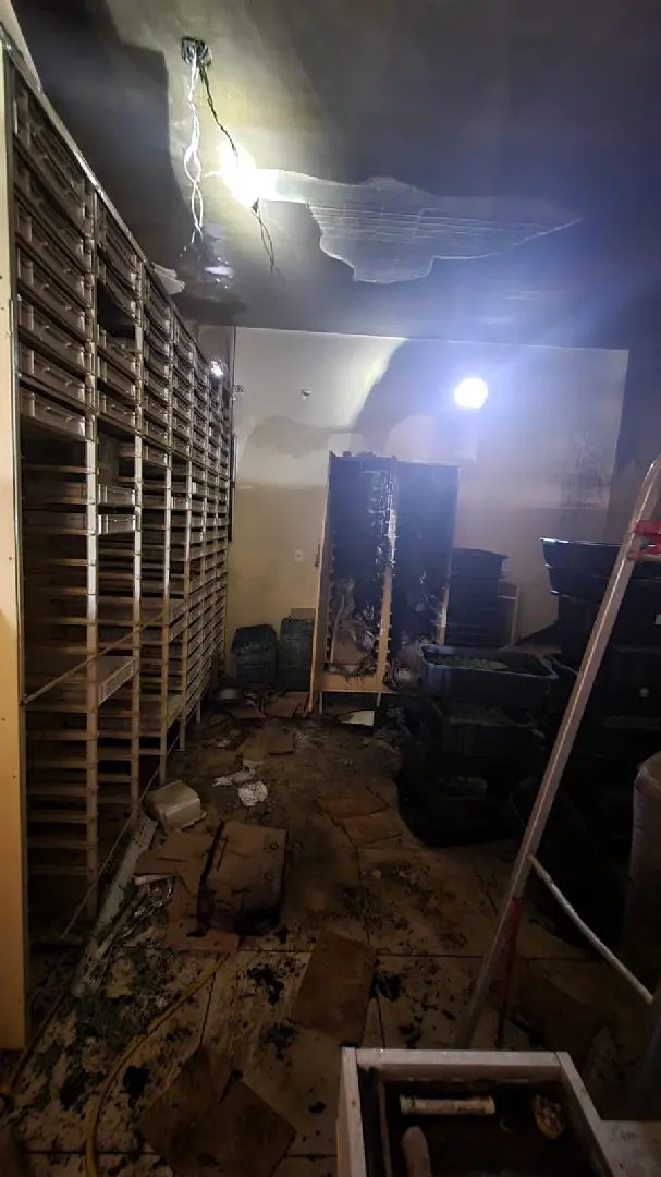Os militares relataram que o fogo se concentrou principalmente em um armário de grande, o qual era destinado à criação dos insetos, sendo que o proprietário e vizinhos conseguiram conter o fogo utilizando extintores, uma mangueira de jardim e baldes de água.