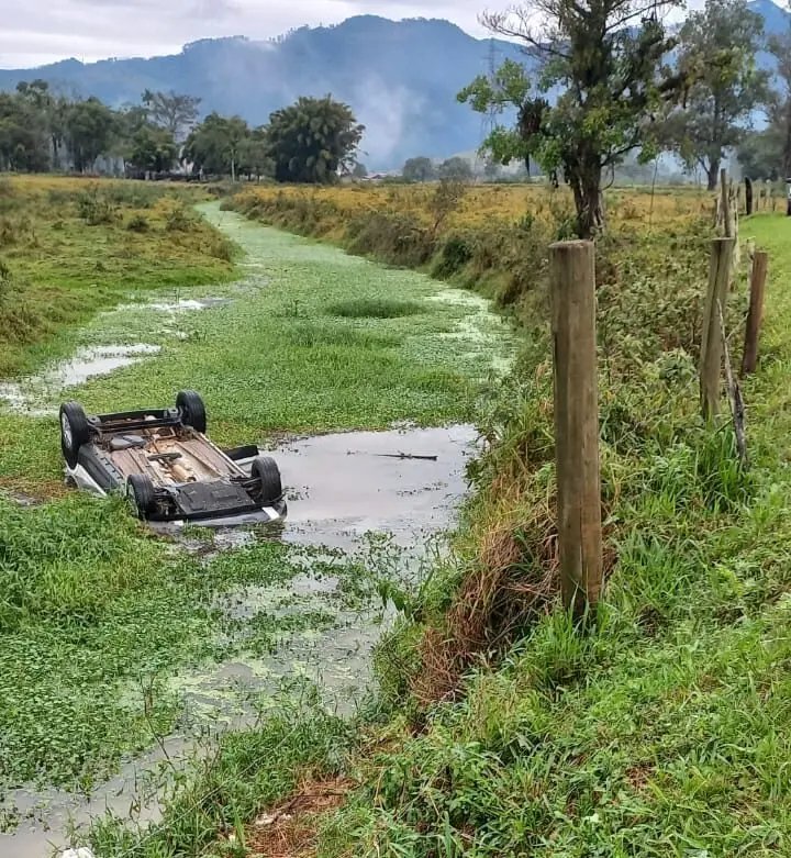 Um verdadeiro milagre, assim pode contar a motorista de um carro que ficou submerso por cerca de 20 minuto em uma vala. O acidente ocorreu no último sábado (12), na rua geral da Nova Descoberta, em Tijucas, depois de uma saída de pista e queda. A motorista sofreu apenas ferimentos leves.