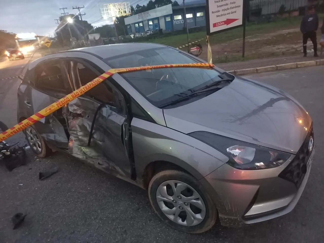 A motorista de um veículo Hyundai tentou convergir para o lado na rodovia e acabou matando um homem que estava em uma motocicleta. Ele, que tinha 26 anos de idade, pilotava uma Honda CG Titan no sentido Canelinha a São João Batista, quando foi atingido e morreu na hora.