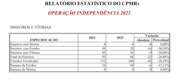 A Polícia Militar de Santa Catarina (PMSC), através do Comando de Polícia Militar Rodoviária (CPMRv), informa na tarde desta segunda-feira (11), os números finais da operação Independência 2023, que iniciou às 19h da última quarta-feira, 6, e encerrou às 7h desta segunda, em todas as rodovias estaduais de Santa Catarina.