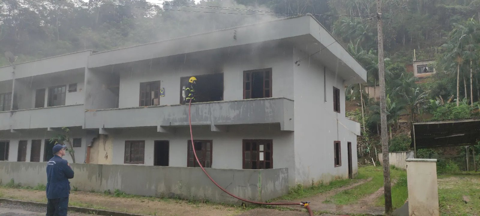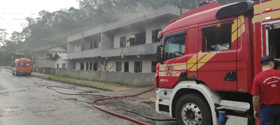Uma casa de dois andares abandonada pegou fogo na tarde desta sexta-feira (22), em Brusque, na Travessa Dom Joaquim, no bairro Dom Joaquim.
