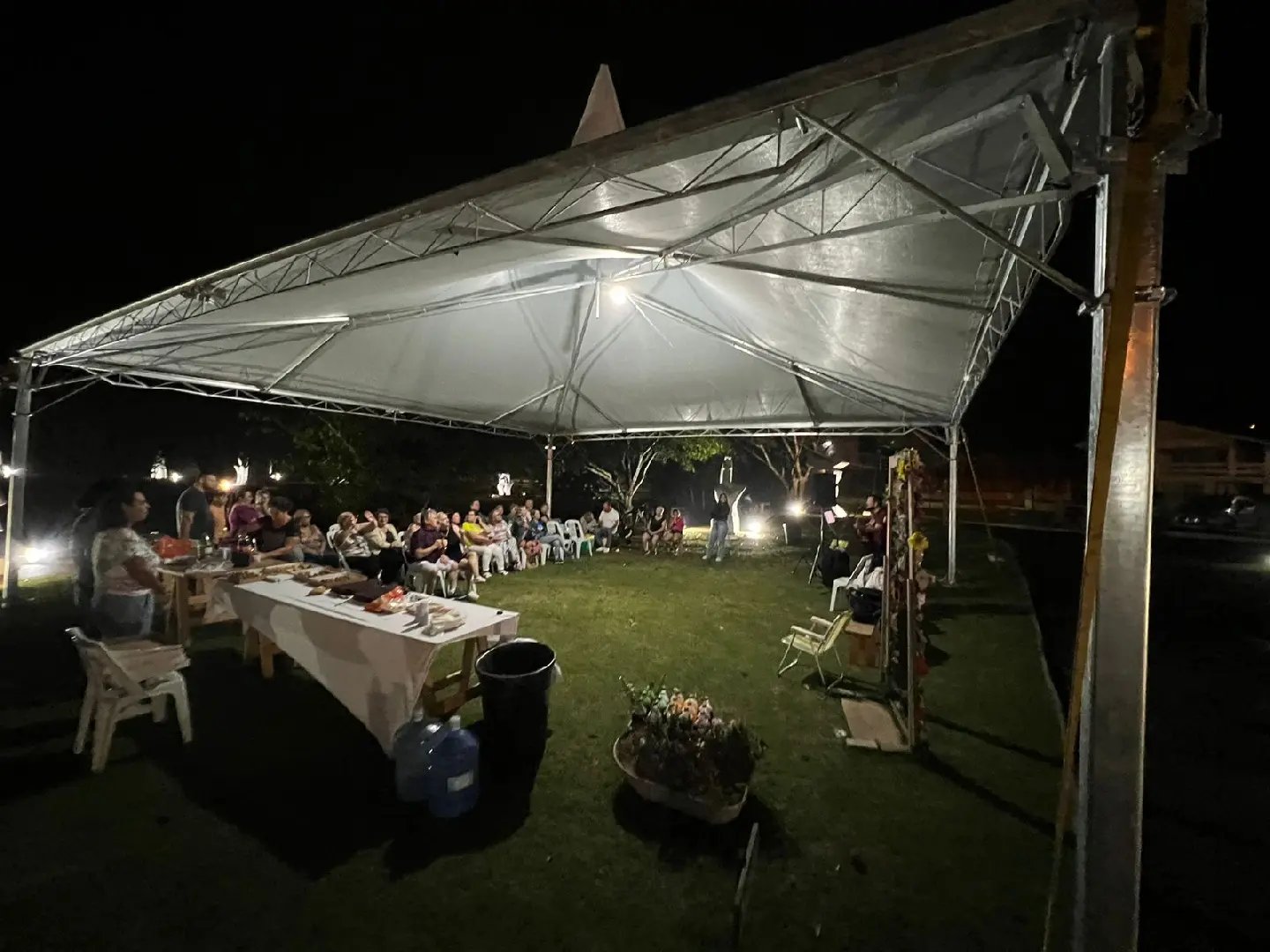 No início do evento, a chuva até que foi persistente. Porém, mais insistente ainda foi a turma, que tratou logo de encontrar um lugar para continuar a festa. A música ficou a cargo de Paulo Celso Pecois e Patrícia Hodecker, que cantaram um repertório especial para a galera e também improvisaram conforme os pedidos do público. Além disso, durante toda a noite, foi servida comida e bebida para todos.
