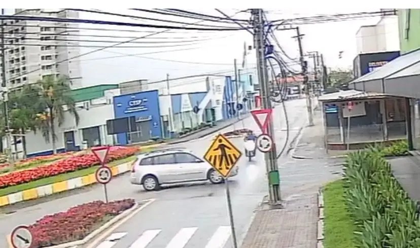 Uma câmera de segurança registrou o momento de um grave acidente entre uma moto e um carro que ocorreu no último sábado (30) em Brusque. A colisão ocorreu por volta das 17h31, na rua Dorval Luz, no bairro Santa Terezinha.