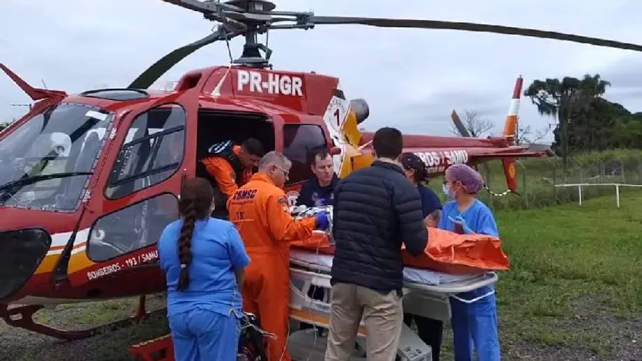 Os militares realizaram os primeiros atendimentos, e devido à gravidade, ele foi encaminhado pela equipe do helicóptero Arcanjo ao Hospital Regional de São José, na Grande Florianópolis.