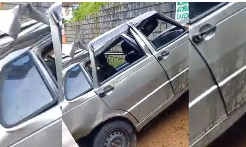 Um veículo Fiat Uno despencou de altura de vários metros e acertou outro carro esta manhã em Brusque. O fato ocorreu por volta de 8h, na Rua Augusto Bento de Mello, no bairro Águas Claras.