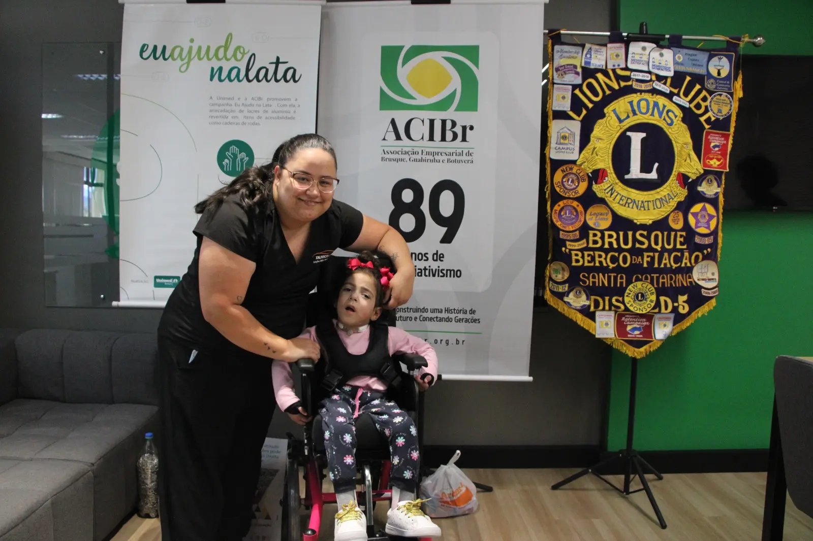 O presidente do Lions Clube Berço da Fiação, Leonardo Maestri, também destacou a importância da ação social. “Temos 50 anos de atividade na cidade e buscamos sempre atender a comunidade de forma voluntária. Hoje podemos concretizar mais uma ação, que é a entrega dessa cadeira adaptada, um dos braços do Lion Clube, que faz a arrecadação dos lacres em parceria com a ACIBr e a Unimed, duas entidades importantes no nosso município. Com isso, conseguimos, mais uma vez, diminuir o sofrimento de uma criança, que agora pode ter uma melhor mobilidade, assistência e um desenvolvimento melhor”, pontuou.
