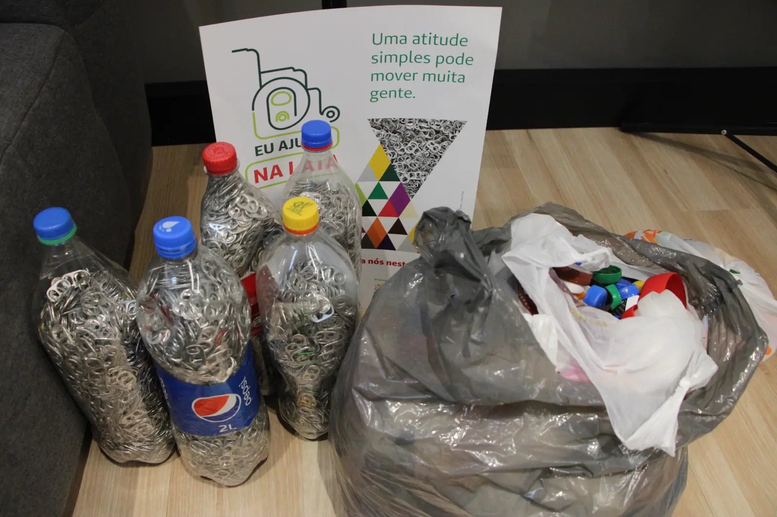 A campanha, que é realizada em Brusque desde 2014, já transformou 8 toneladas de lacres e tampinhas em cadeiras de rodas. Para a compra da cadeira de Laura, foram arrecadados 600 kg de lacres e tampinhas de garrafa em uma ação que durou quase dois anos.