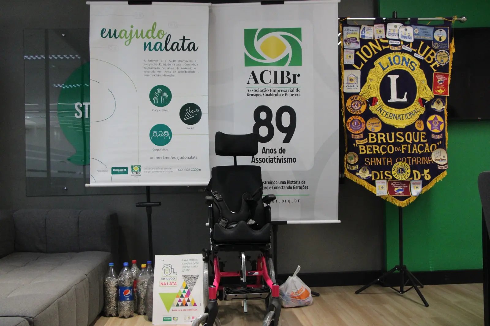 A campanha “Eu Ajudo na Lata” continua. Lacres e tampinhas de garrafa podem ser entregues nos pontos de coleta localizados na: ACIBr, Apae de Brusque, Apae de Guabiruba, Escola Charlotte, Unimed, Rede Feminina de Combate ao Câncer e Lions Clube.