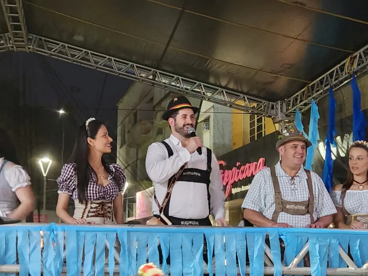 “Quem não veio hoje não sabe o que está perdendo. Muito alegria, Chopp, comida, uma diversão, clima muito bom. Eu faço o convite especial para vocês. Venham no feriado do dia 12. Se não puder, venham no dia 13, dia 14, no final de semana. Mas venham prestigiar a festa, comer bem, beber um bom chopp, passar bons momentos com a família e com os amigos e prestigiar a melhor festa do Brasil. Fica o convite especial para vocês”
