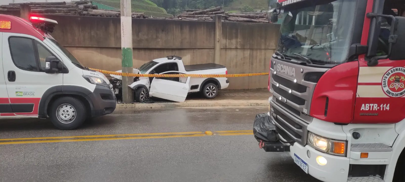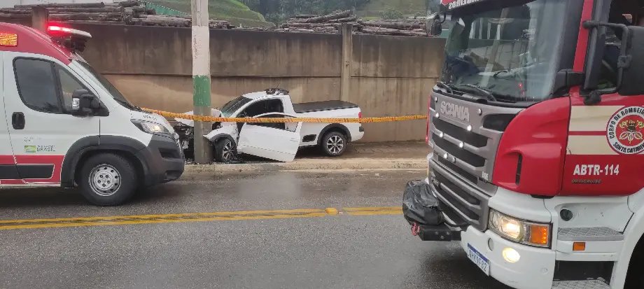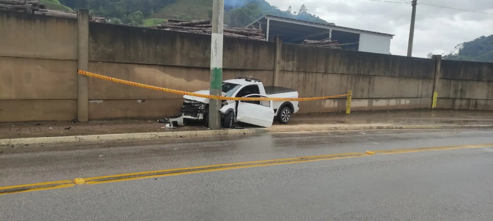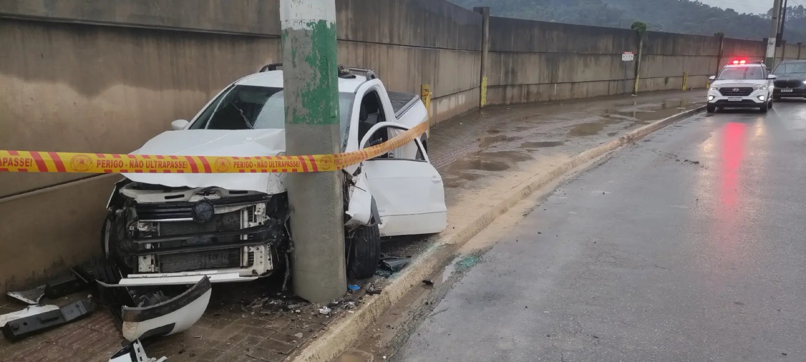 Uma grave colisão de um carro contra um poste na tarde desta quinta-feira (12) deixou uma pessoa ferida em Brusque. O acidente ocorreu por volta das 15h56, na rua Abraão de Souza e Silva, no bairro Bateas.