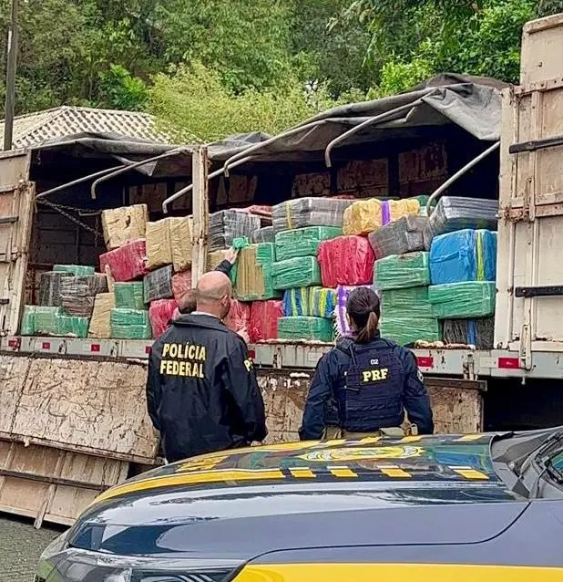 As duas forças de segurança trocaram informações e localizaram o veículo suspeito, uma carreta Scania placas de Campo Grande/MS, transitando sentido sul da BR-101. A abordagem foi feita na Unidade Operacional da PRF em Barra Velha. Os fardos da droga ocupavam boa parte do semirreboque, escondidos por uma lona preta.