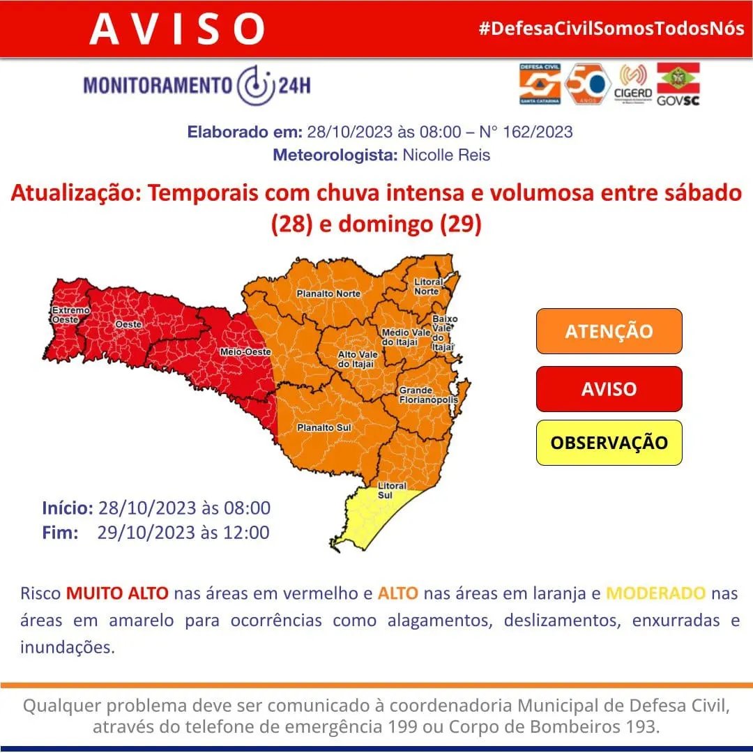 Fique atento a mais atualizações a qualquer momento. Em situações de emergência, entre em contato com a Defesa Civil pelo telefone 199, ou com o Corpo de Bombeiros pelo número 193.