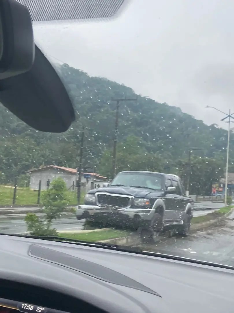 Imagens recebidas pela reportagem da Rádio Cidade, por um motorista que passava pelo local, mostram o carro, uma Ford/Ranger, em cima do canteiro que divide as duas pistas.