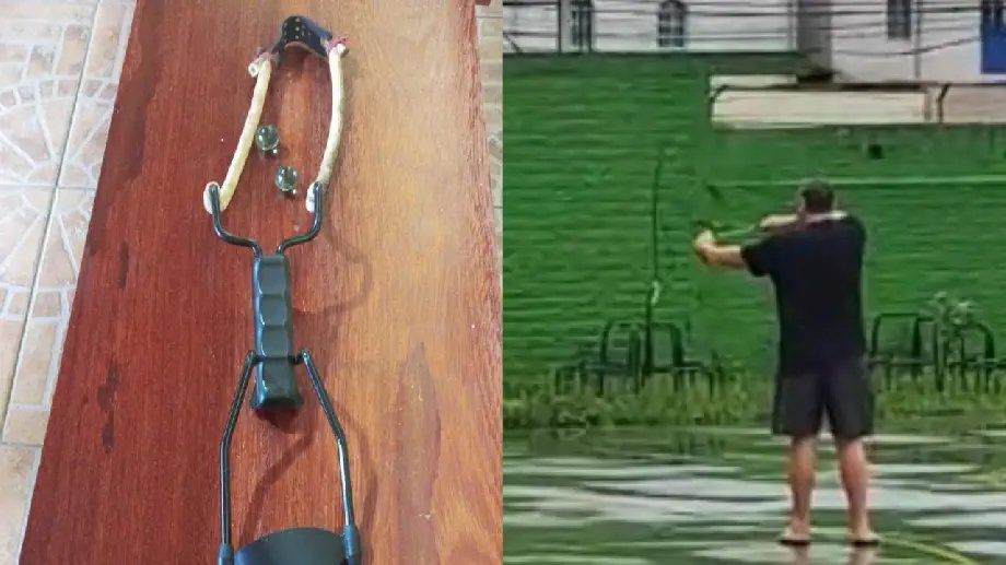 “Eles ficaram com as mãos na cabeça e eu pedi para eles deitarem na quadra e eles deitaram e ficaram sem se mexer, e eu com o estilingue na mão”, relembrou.