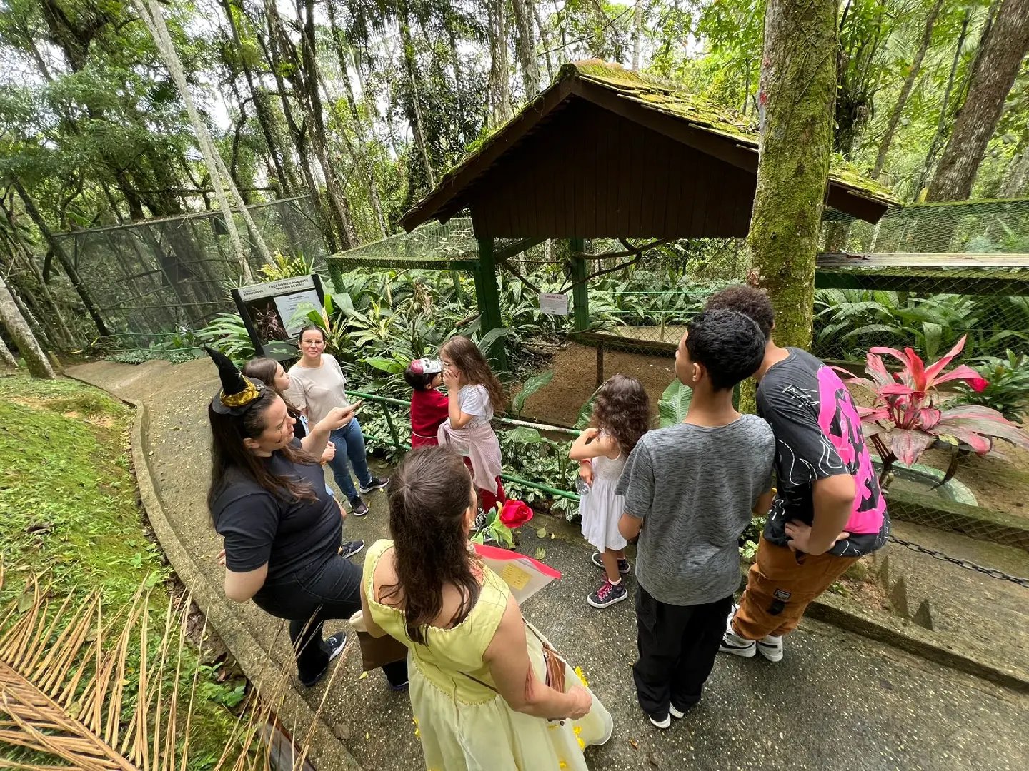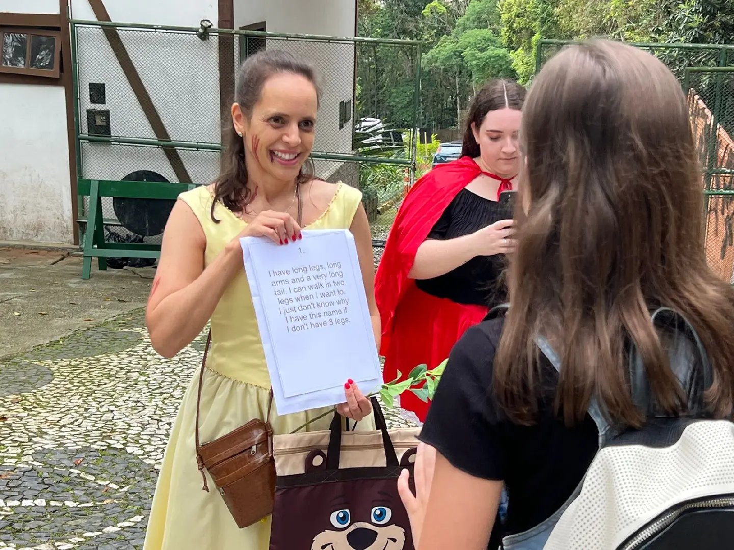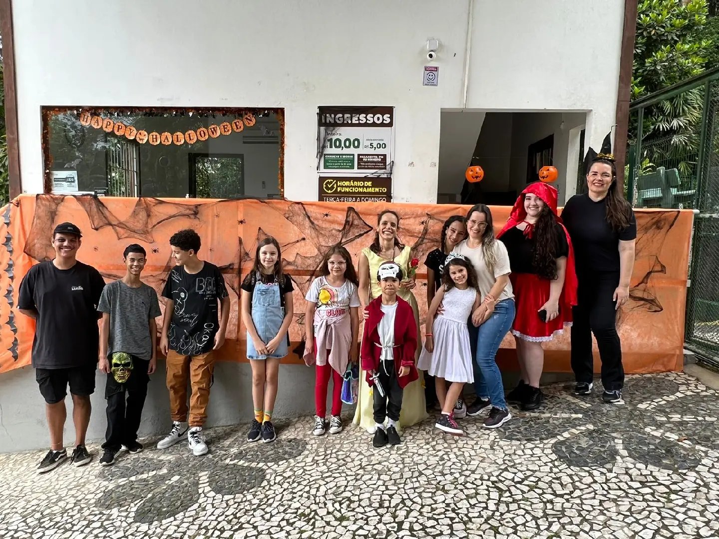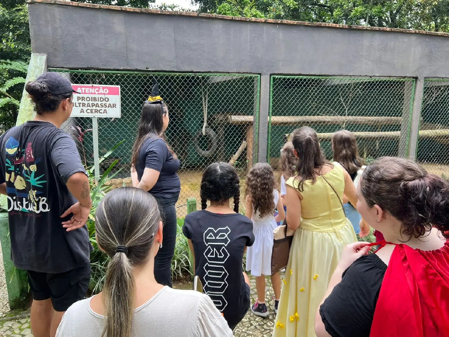 O destaque do dia ficou por conta da turma de Inglês do curso FISK, de Brusque. A professora. Maria Angélica Castro, preparou um itinerário diferenciado para os estudantes, mesclando a prática do inglês, curiosidades sobre o Halloween e, também, a diversidade de fauna e flora existente no zoo.