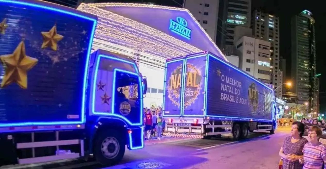 Quatro caminhões personalizados terão a iluminação sincronizada conforme o ritmo da canção de Natal Havan. O Papai Noel e a Estátua da Liberdade também participarão do desfile que inicia e encerra o trajeto sempre em frente a cada megaloja Havan.
