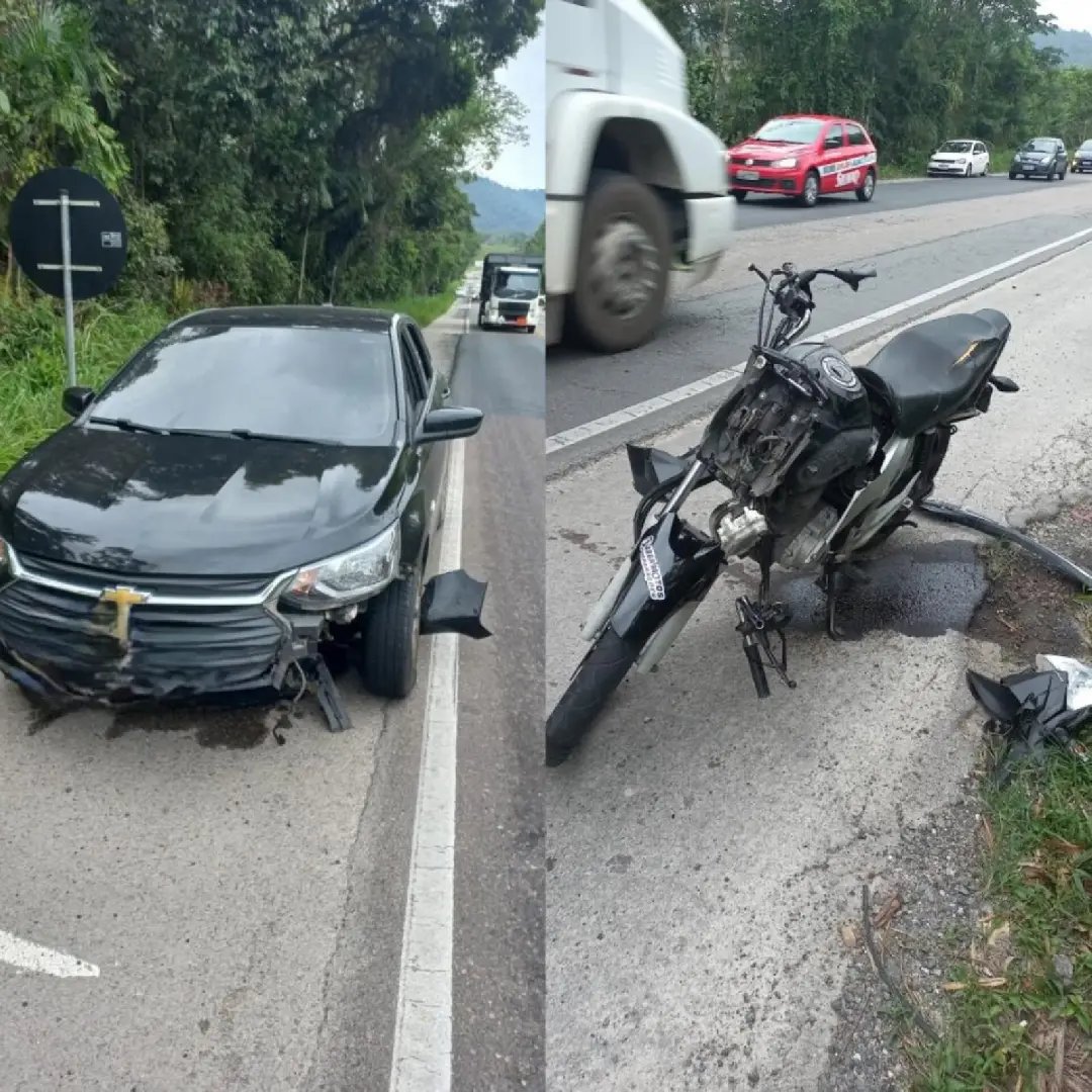 A colisão frontal entre carro e moto deixou um homem de 28 anos de idade ferido esta manhã. O acidente ocorreu por volta de 6h50, na Rodovia Ivo Silveira, região do bairro Bateis, em Gaspar. O carro tinha placas de Brusque.