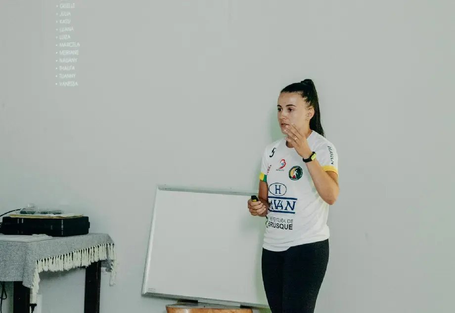 Espero que seja uma experiência única e linda, eu vou dar o meu melhor e penso em voltar para casa feliz, realizada e com muita experiência para poder compartilhar com o pessoal aqui, agradeço ao meu clube que me formou e as meninas, as atletas, comissão técnica, que nós sabemos o quão difícil é chegar aqui. Vou estar representando o clube, a nossa cidade, porque Brusque foi uma cidade que eu me apaixonei e que me recebeu de braços abertos, então eu já me considero brusquense de coração e eu tô indo lá representar cada brusquense que aqui existe, que acredita no nosso trabalho.