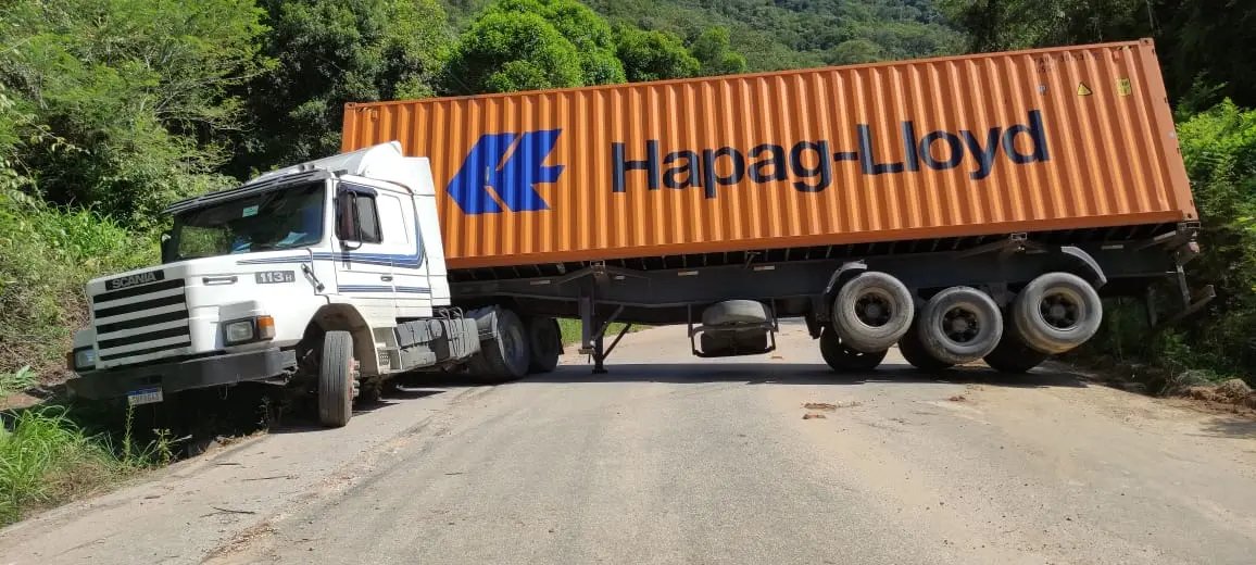 O motorista do caminhão permanece no local desde ontem. Ele se deslocou de Itajaí com direção a Brusque. Inicialmente, a carga, uma máquina para tecelagem, deveria ser entregue no bairro Limeira Baixa.