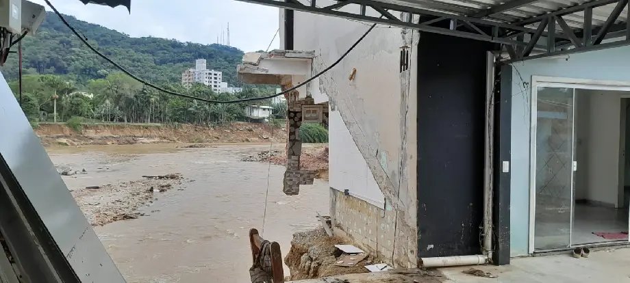 A família de Régis Arruda está passando por uma situação delicada e dramática. A casa em que residiam, no bairro Jardim Maluche, foi arrastada pela força da água e desabou após o desbarrancamento da margem do Rio Itajaí Mirim na última semana. O motivo, uma obra de contenção realizada pelo Samae e que fez com que a água avançasse sobre a margem da via, atingindo com o tempo o imóvel.