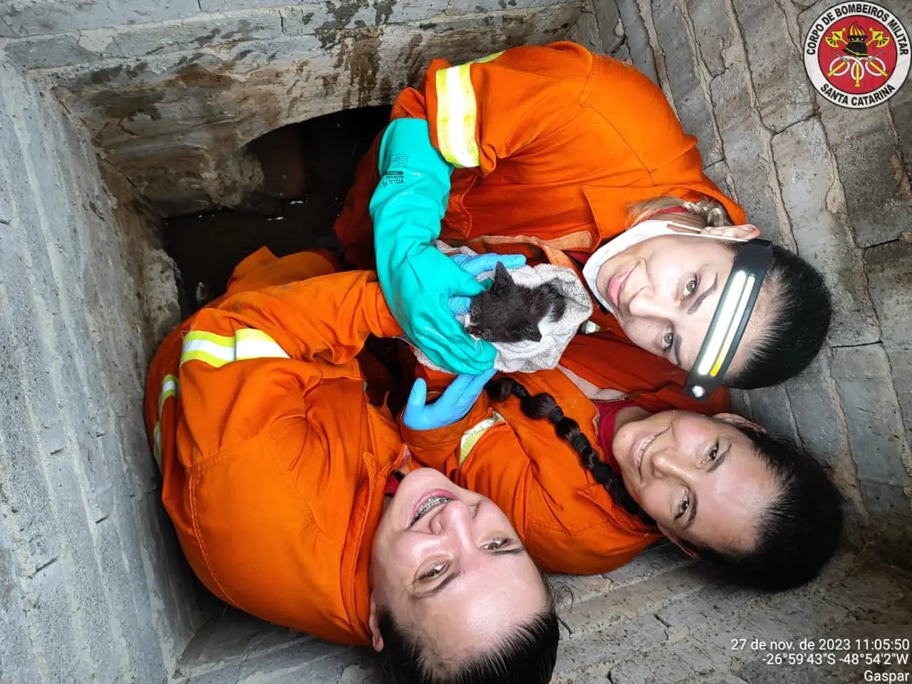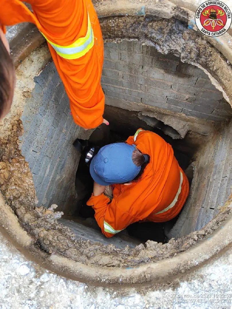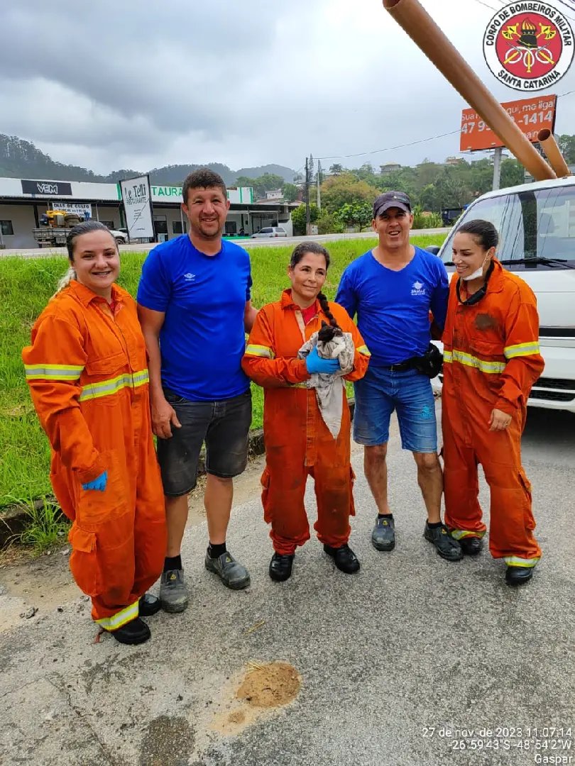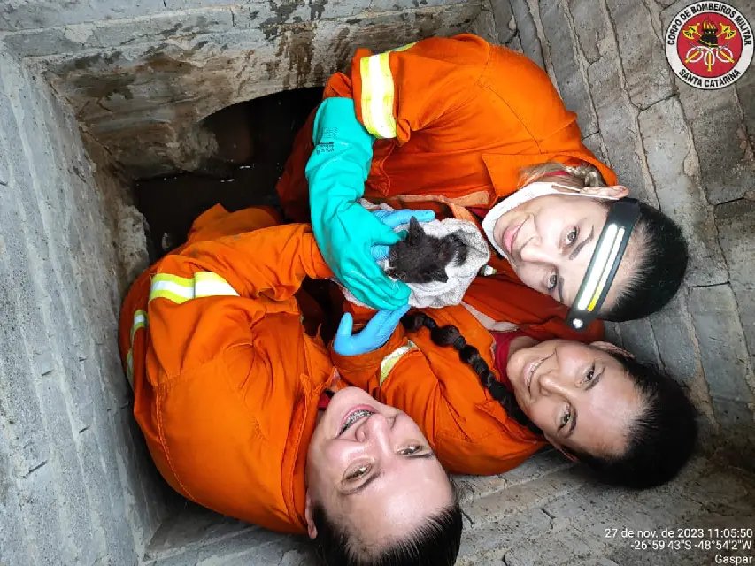 Um filhote de gato foi resgatado na manhã desta segunda-feira (27), após ficar preso em uma tubulação de água e esgoto por mais de 3 horas. O fato ocorreu por volta das 07h, na rua Fortunato Gabriel Melato, no bairro Barracão, em Gaspar.