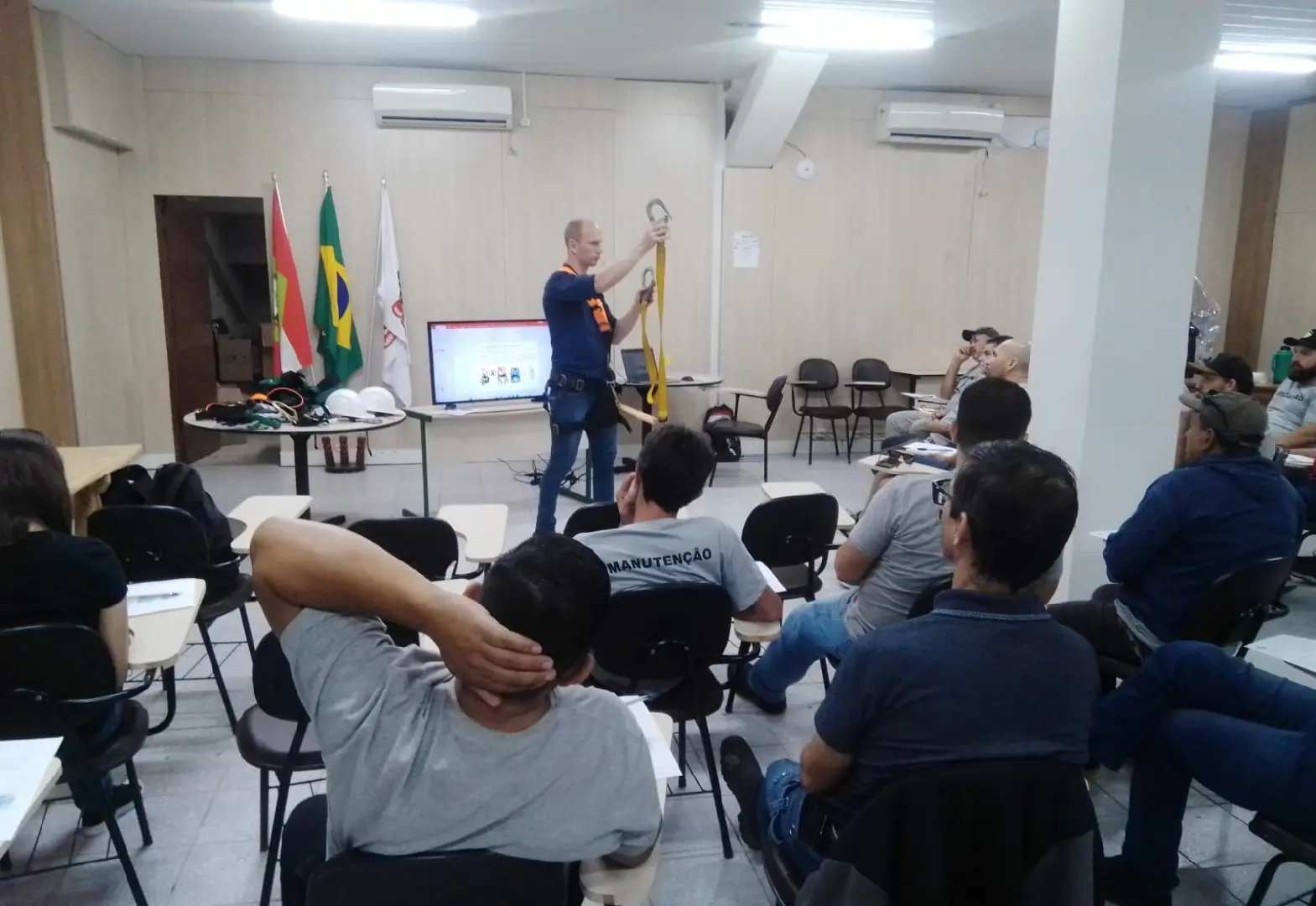 Na sexta-feira (24), os profissionais de manutenção da Secretaria de Educação de Brusque passaram por uma formação sobre a Norma Regulamentadora 35 (NR-35), que rege os trabalhos em altura.