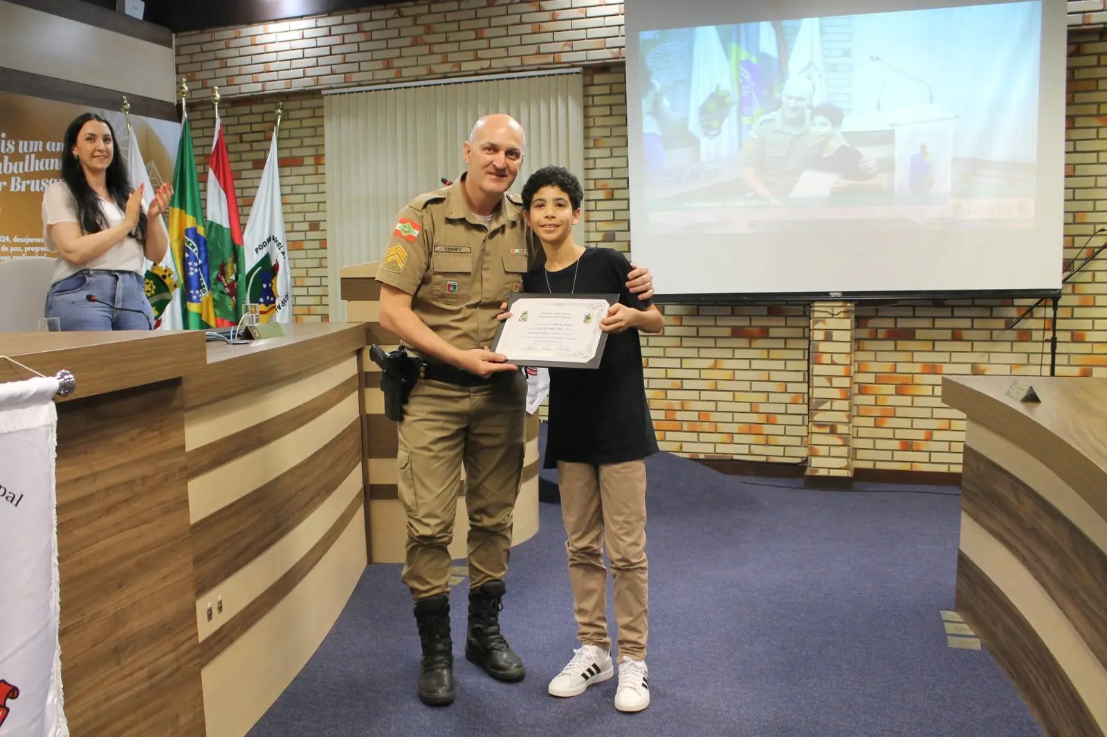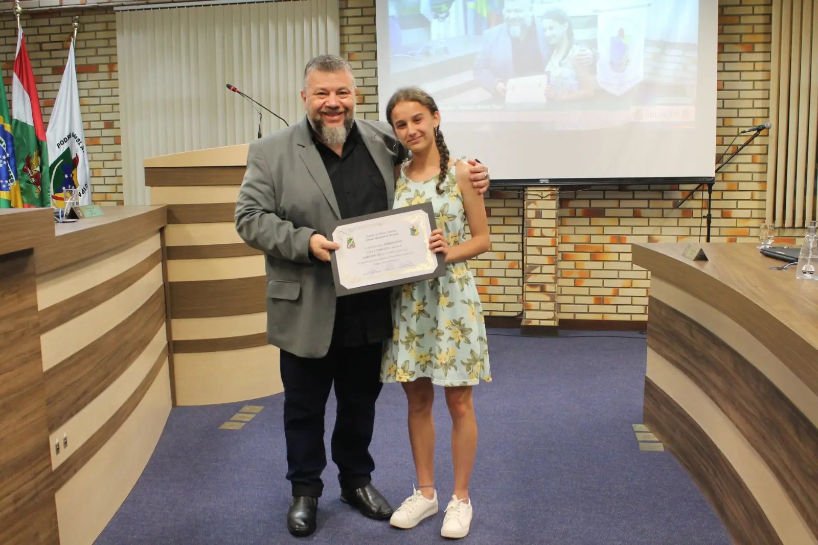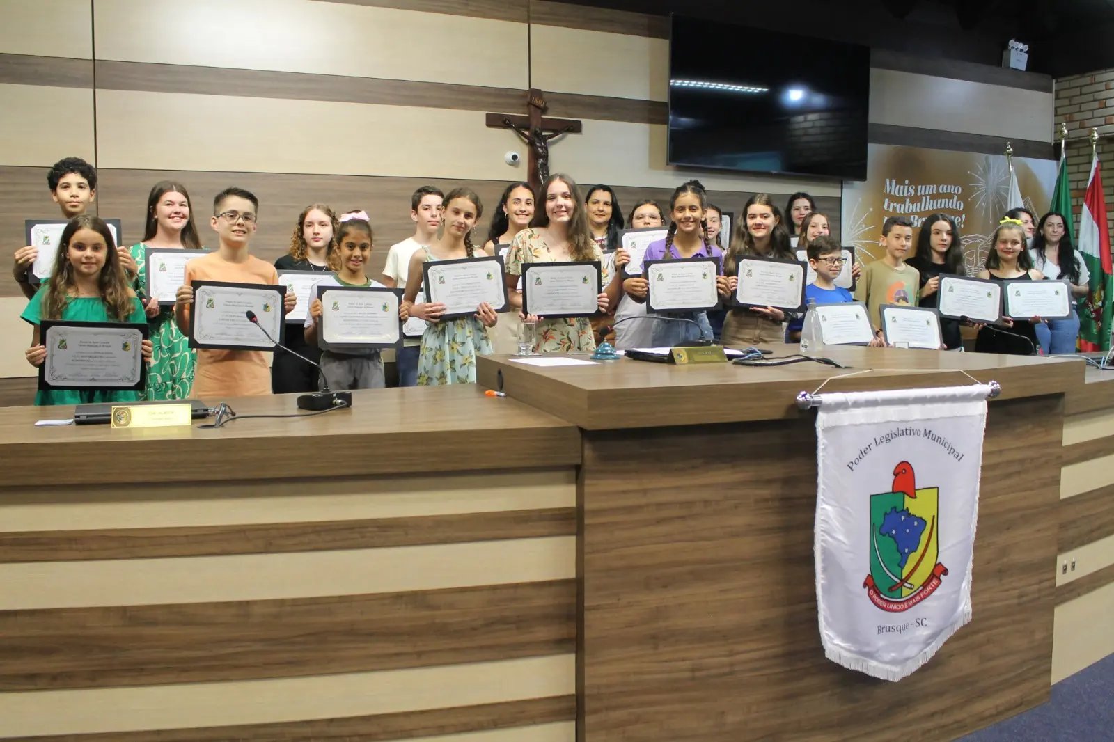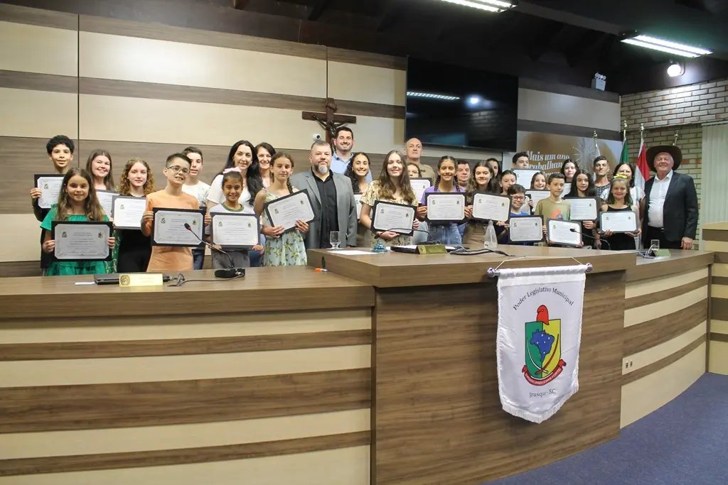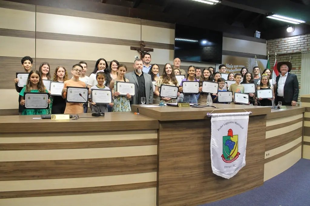 A cerimônia contou com a presença de familiares dos alunos, educadores das respectivas escolas e vereadores. Na mesa diretora do evento, estavam o presidente da Câmara, Cassiano Tavares, o Cacá (Podemos), o prefeito André Vechi (PL) e a secretária municipal de Educação, Franciele Márcia Mayer.