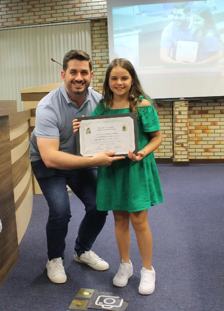 O Poder Legislativo teve a honra de homenagear os estudantes do 5º ao 9º ano do Ensino Fundamental da rede pública municipal que obtiveram as melhores médias do ano letivo de 2023. Eles foram premiados com o diploma de Aluno Nota Dez em sessão solene realizada no plenário da Câmara de Vereadores na noite desta quinta-feira, 7 de dezembro.