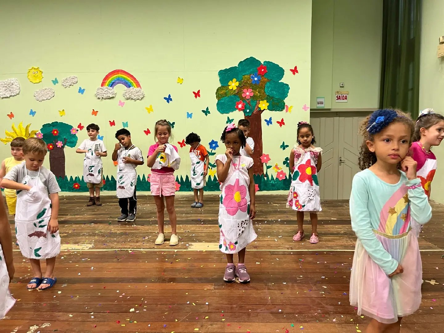 Os estudantes do Pré II E e A desenvolveram a música "Doce Infância", enquanto a turma Pré II E e F produziu a canção "Sementinhas".