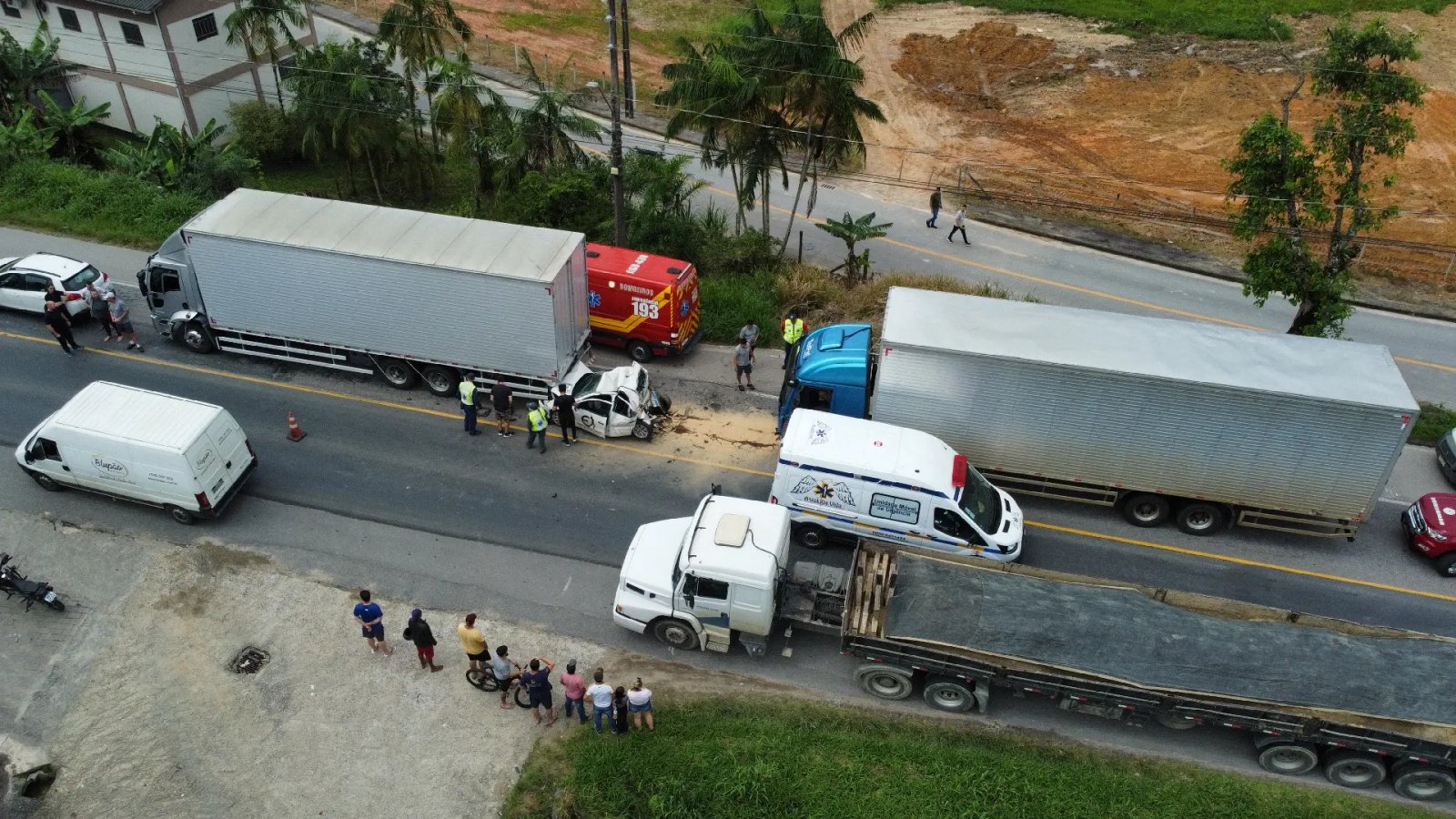 Quanto aos motoristas dos outros veículos, dois caminhões e um carro Peugeot/3008, eles não se feriram e permaneceram no local aos cuidados da Polícia Militar Rodoviária.