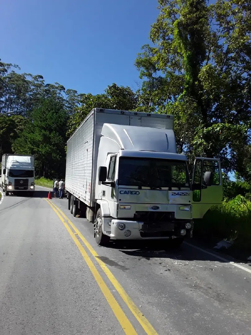 Com o trânsito parado em uma das pistas, outro caminhão que descia pela via, depois de uma curva, não percebeu que o tráfego estava interrompido. Para evitar uma colisão com outros carros, ele desviou para a pista oposta e acabou colidindo com o caminhão que trafegava pela via liberada