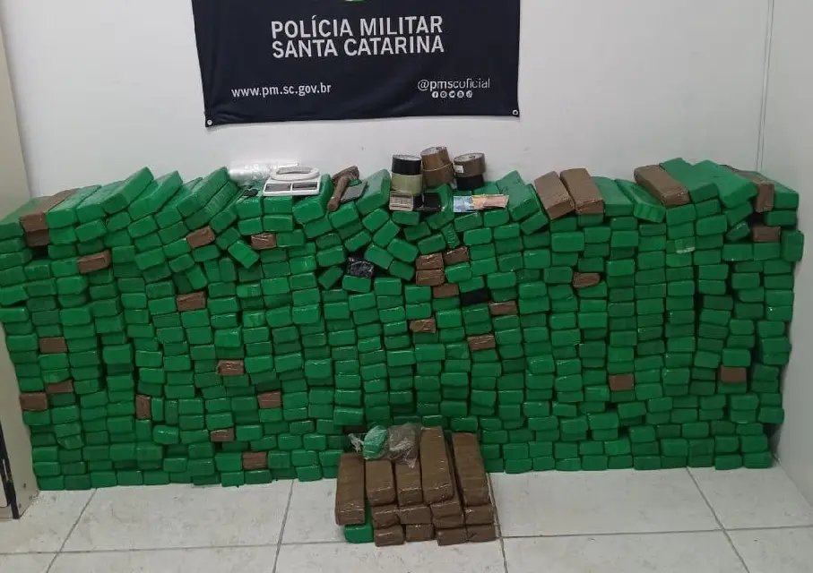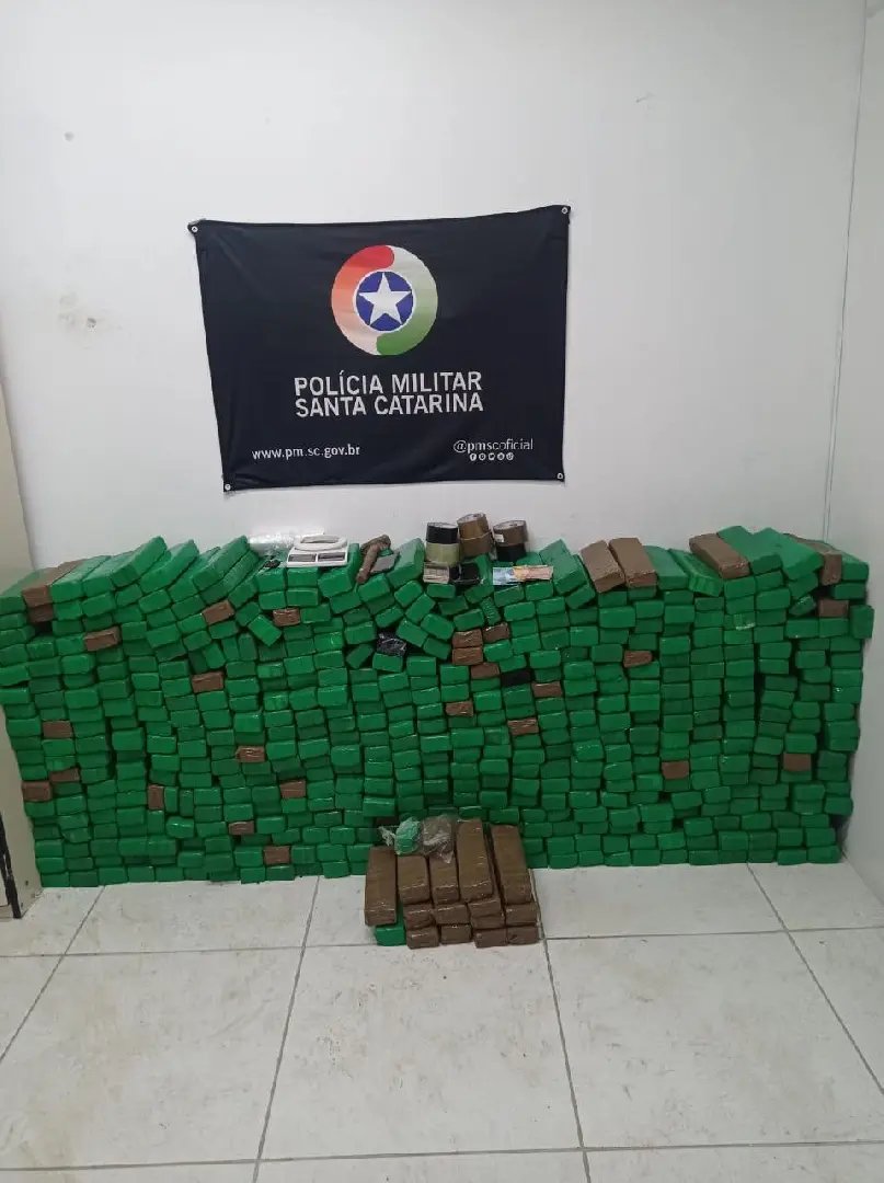 Dois homens, de 26 e 22 anos, foram presos na madrugada de quarta-feira (31) pelo crime de tráfico de drogas. A prisão ocorreu por volta das 00h16, no bairro Badenfurt, em Blumenau, e com eles foram encontrados 358,45 kg de maconha.