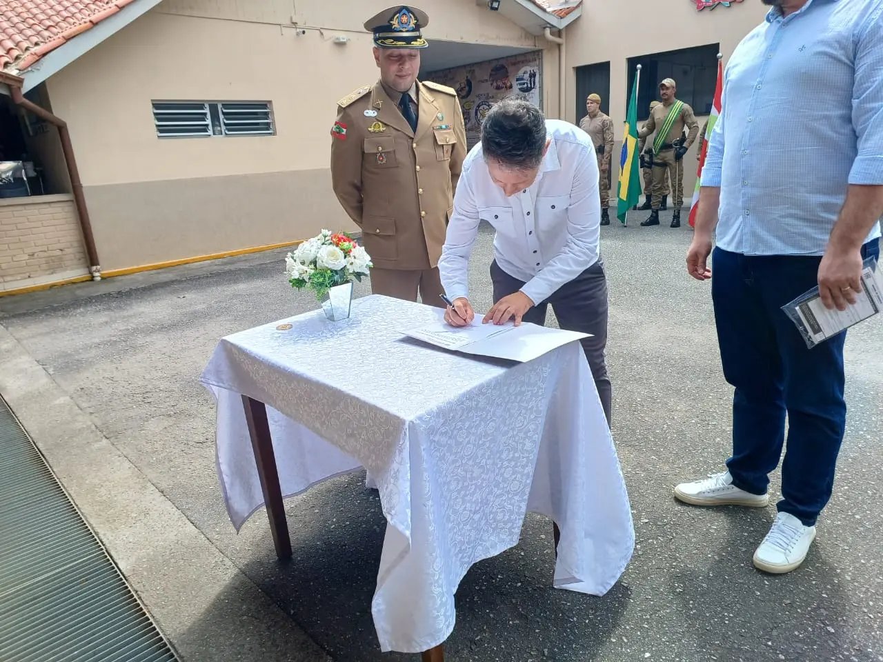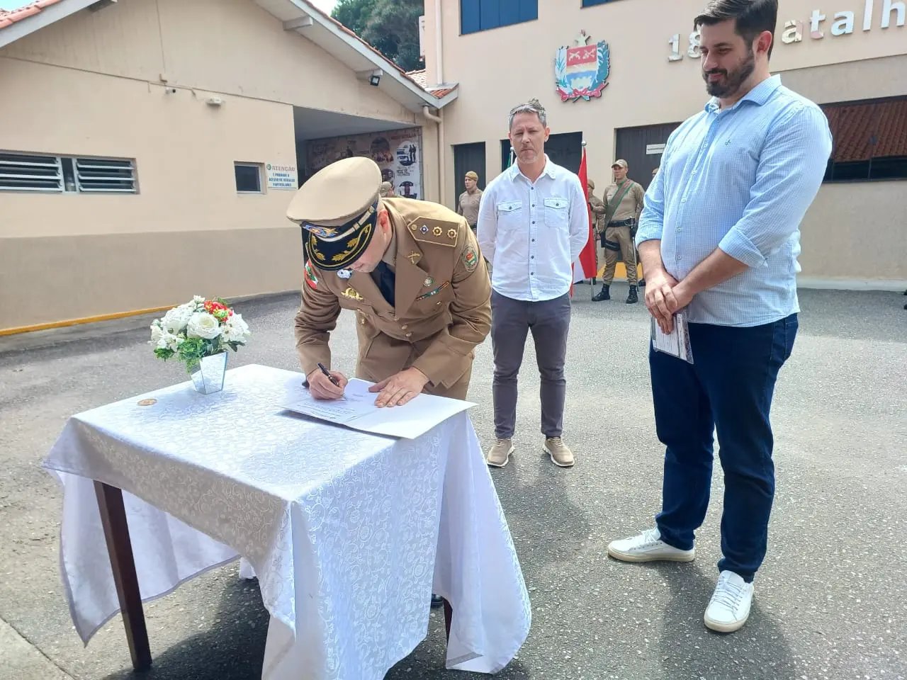 O Serviço Autônomo Municipal de Água e Esgoto (Samae) de Brusque, por meio de seu Diretor-Presidente Cláudio Adão Pereira, juntamente com o Prefeito Municipal de Brusque, André Vechi, entregou ao comandante do 18º Batalhão da Polícia Militar de Brusque, Tenente Coronel PM Pedro Carlos Machado Junior, as chaves de um veículo zero quilômetro adquirido por meio do convênio 16192/2022.