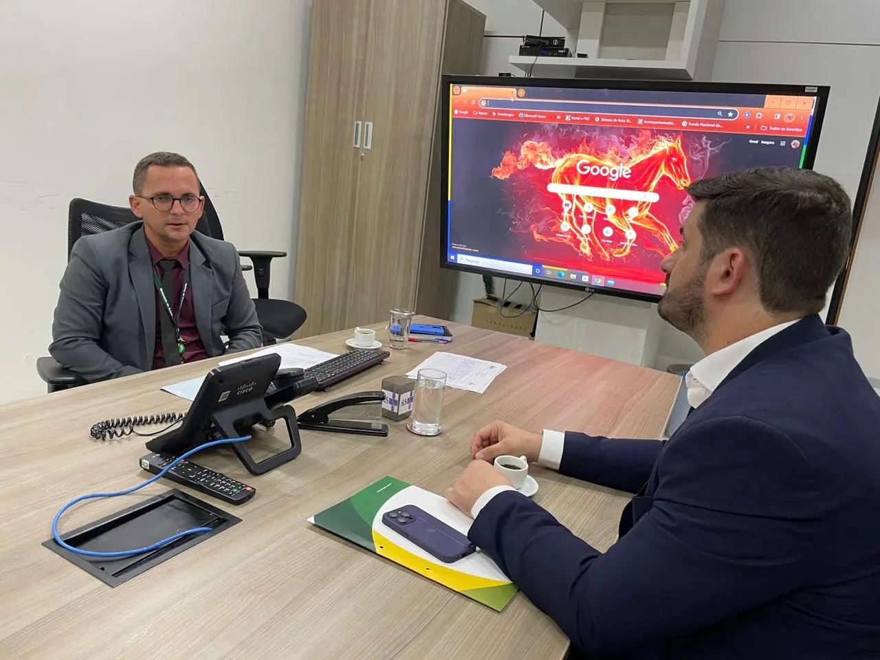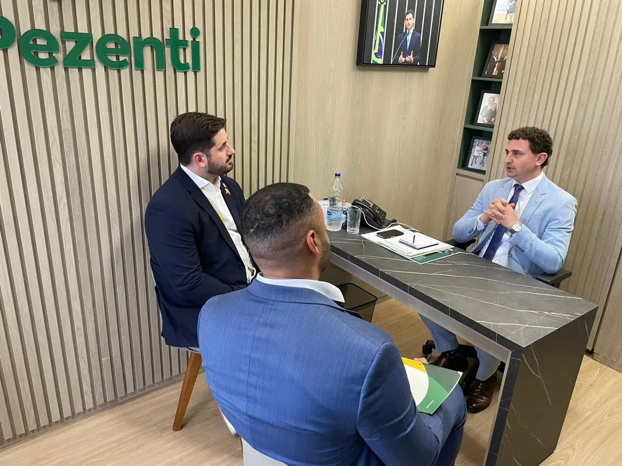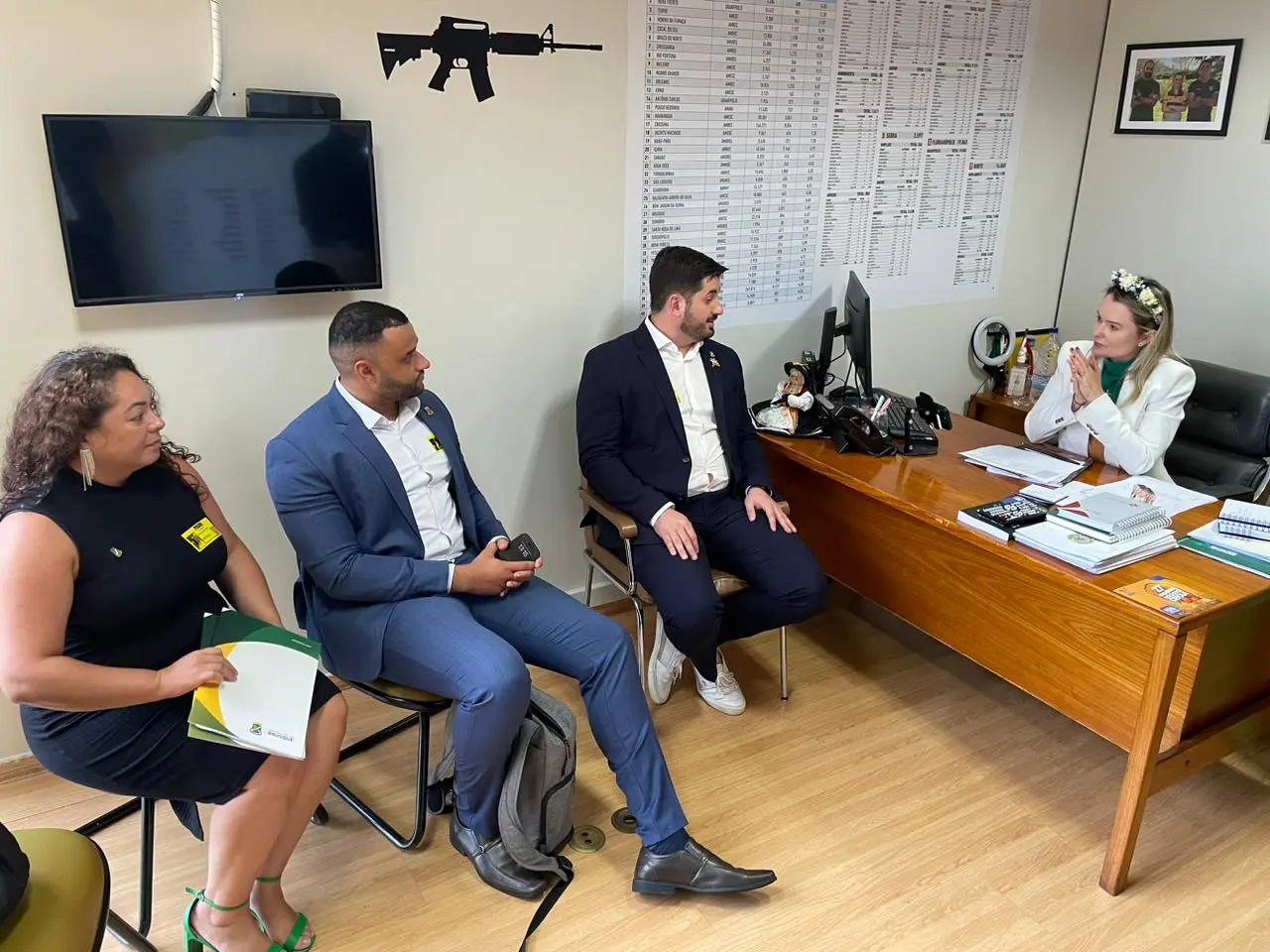Além do chefe do Executivo, estão presentes o secretário municipal de Fazenda e Gestão Estratégica, José Henrique Nascimento, o secretário municipal de Comunicação Social, Wilson Schmidt Junior, e a diretora de Convênios e Captação de Recursos, Cintia Wilke.