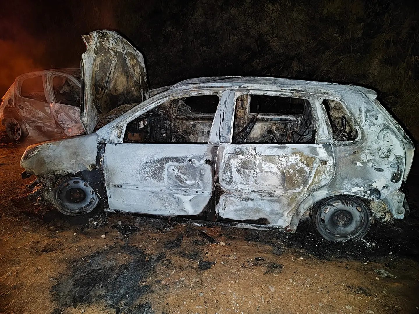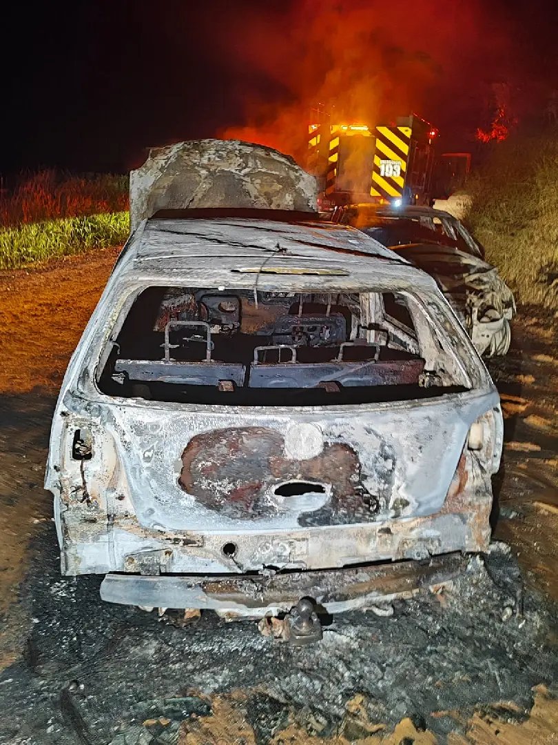 Após a colisão frontal entre os dois automóveis, conduzidos por motoristas de 35 e 33 anos de idade, teve inicio ao fogo, onde carbonizou grande parte dos automóveis.
