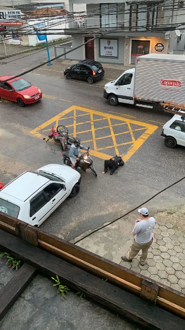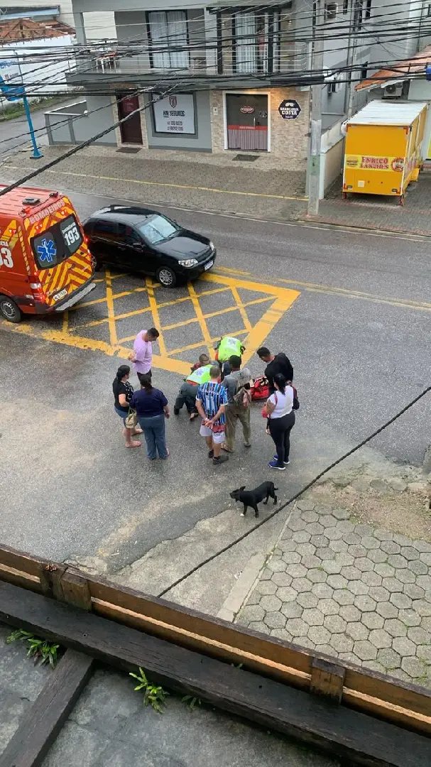 A partir da visualização de fotos, enviadas por um morador da localidade, é possível observar o motociclista deitado no chão, com pessoas em seu redor e uma viatura do Corpo de Bombeiros recém chegada para atendê-lo.