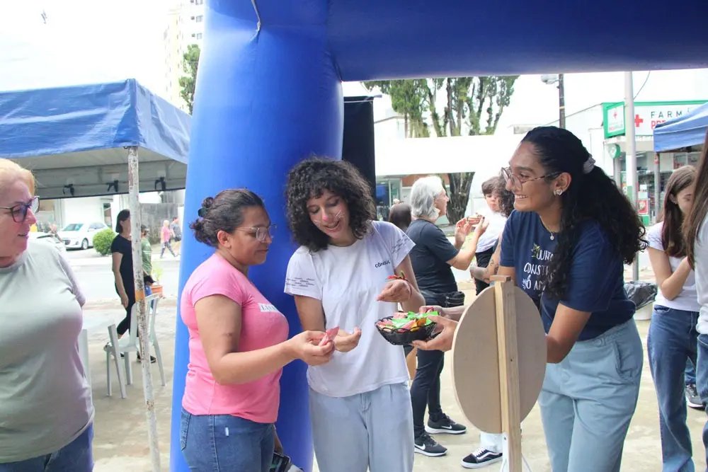 Para lembrar o Dia Internacional da Mulher, celebrado na sexta-feira, 8 de março, a CDL Brusque contou com a parceria de alunos do Colégio Cônsul Carlos Renaux, que realizaram uma ação com a distribuição de chocolates e elogios às mulheres que estiveram no centro da cidade. "Temos um grupo de estudantes do colégio que são voluntários em ações sociais da cidade e, a cada mês, trabalhamos algum assunto. Com o Dia da Mulher, realizamos essa ação de distribuir chocolates e elogios, como uma forma de homenagear as mulheres que passam aqui pela praça", explica o professor da instituição, Nathan Krieger.