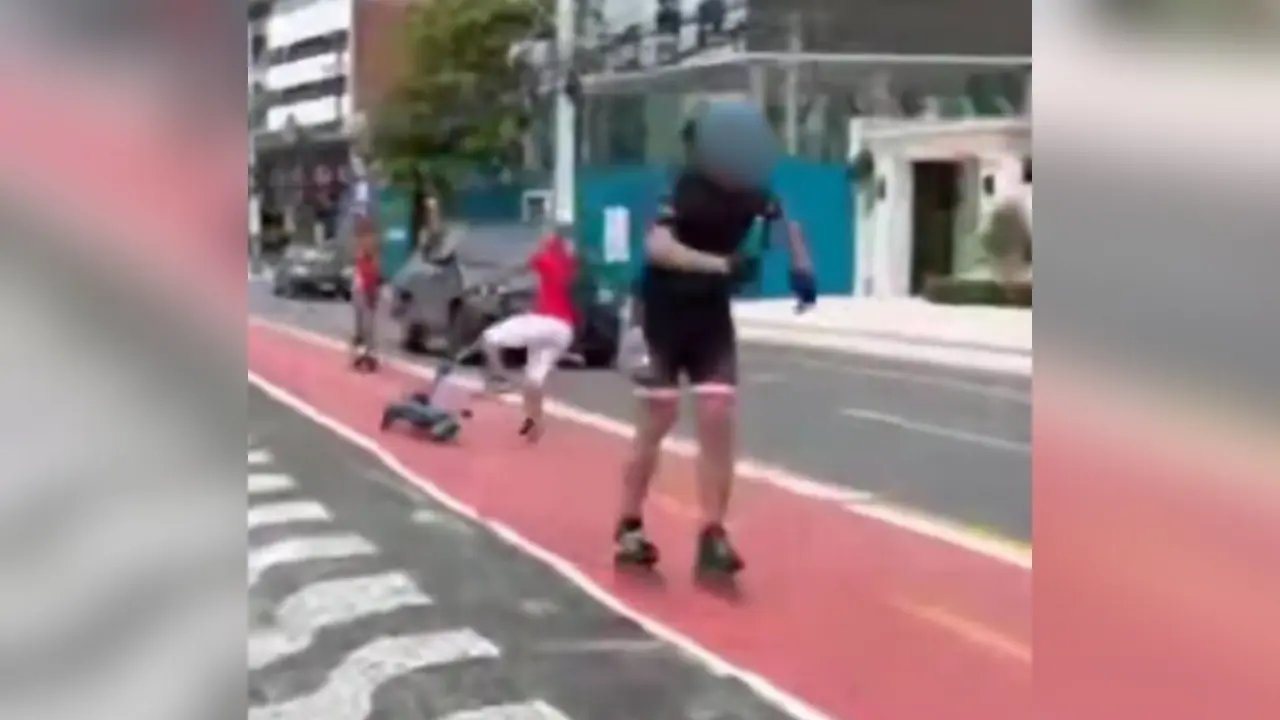 Por pouco, uma tragédia não ocorreu na tarde do último sábado (9). Um homem que andava de patins empurrou outra pessoa que estava de patinete . Ele caiu e sua cabeça, por pouco, não foi esmagada embaixo do rodado de um carro. O fato aconteceu na cidade de Balneário Camboriú e uma pessoa filmou o exato momento do acidente.