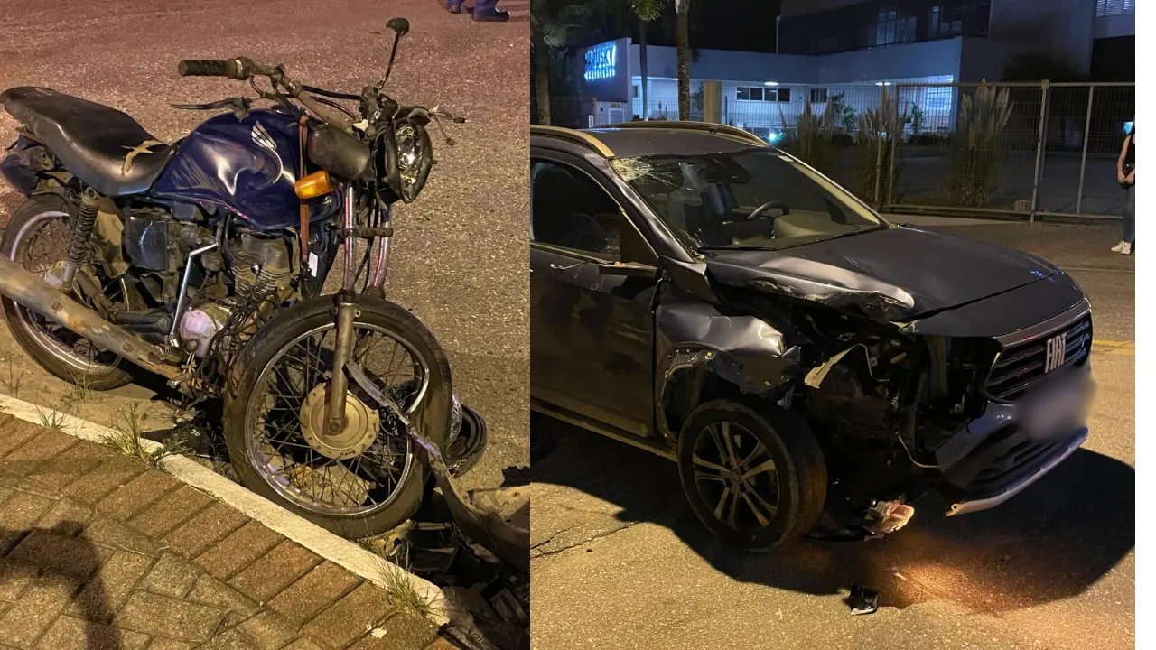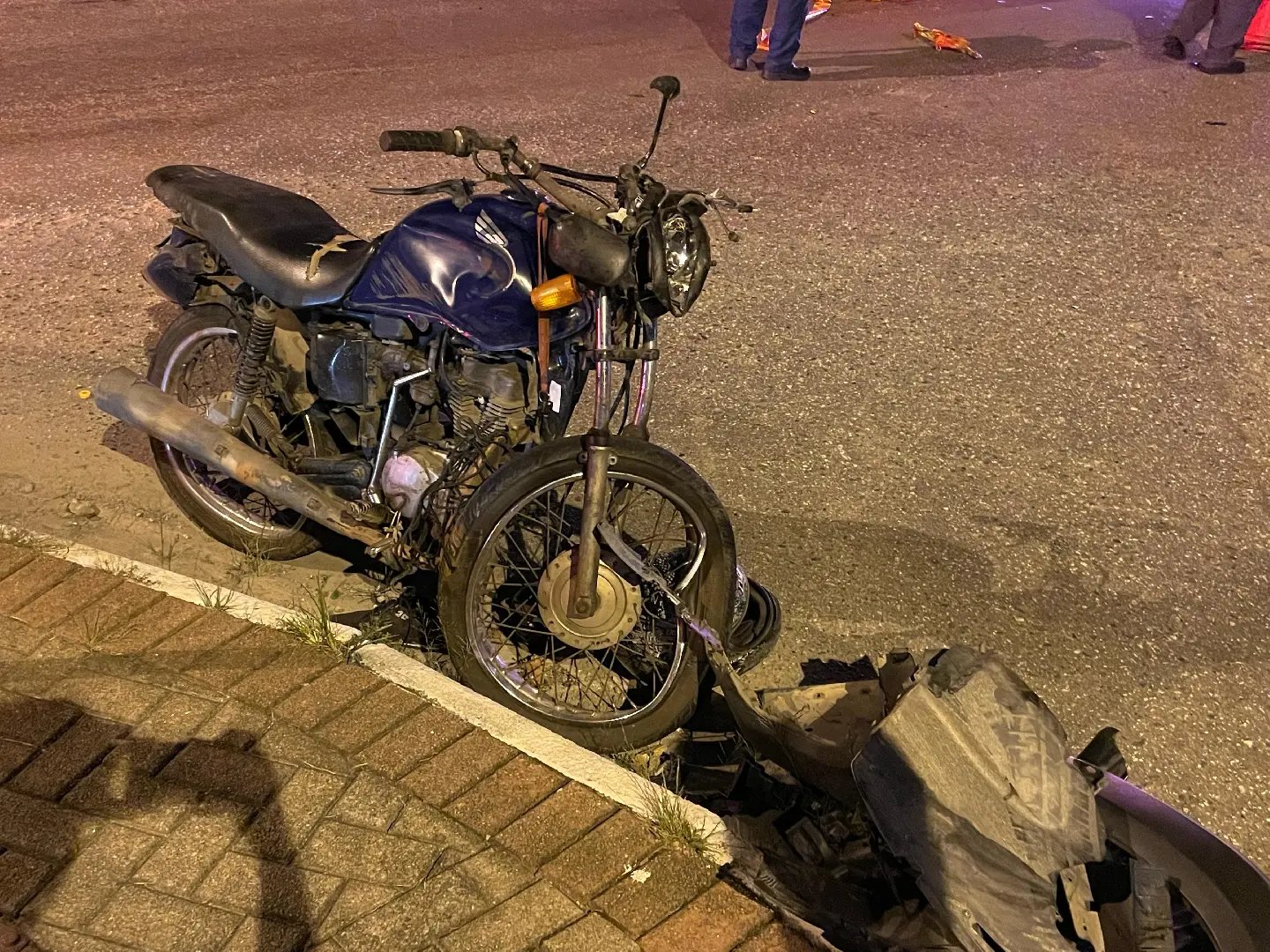 Imagens mostram como ficaram carro e moto após acidente fatal