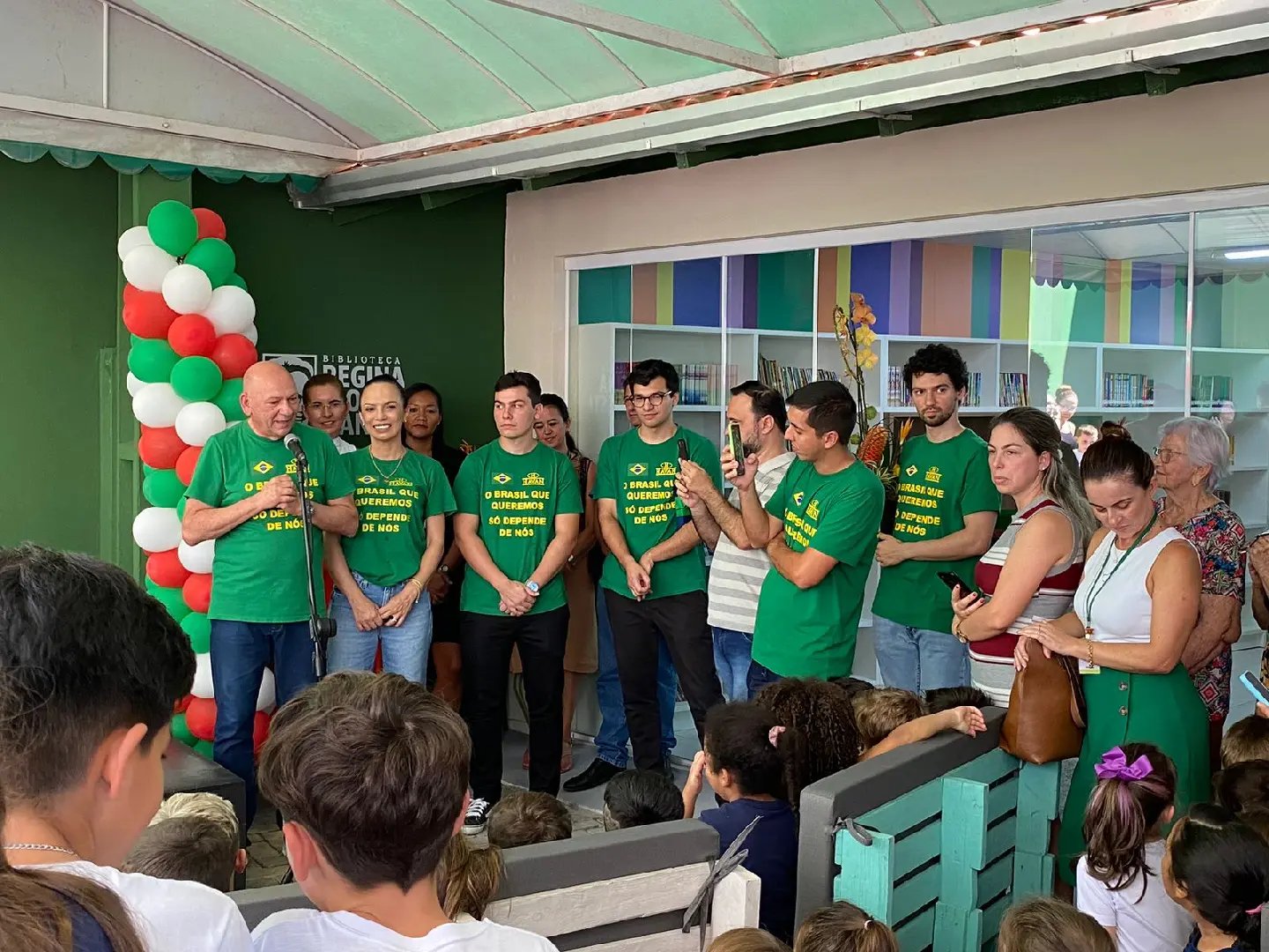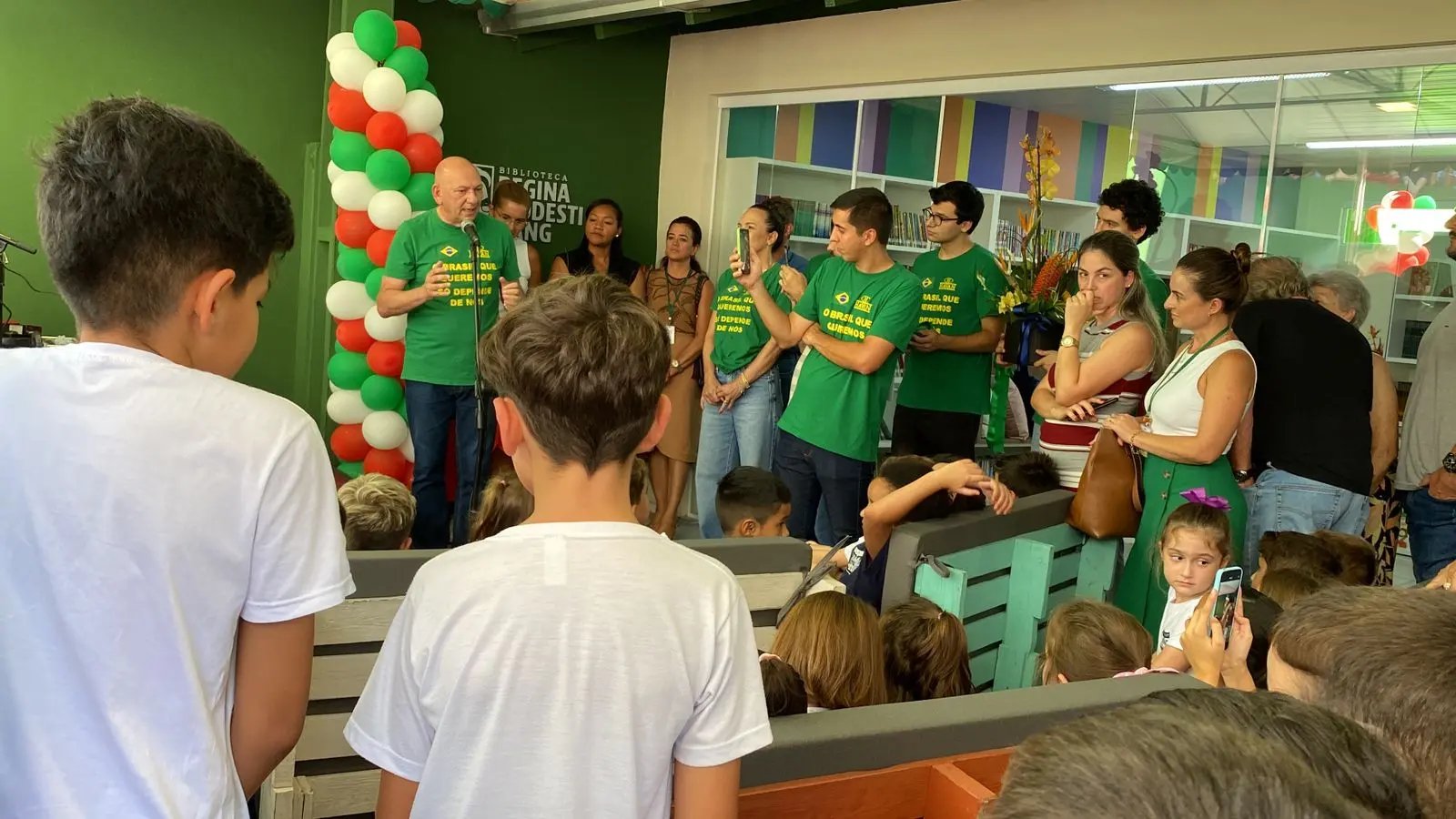 Na manhã desta quarta-feira (13), o empresário Luciano Hang, participou da inauguração da nova biblioteca da Escola de Educação Básica João XXIII, em Brusque que recebeu o nome da sua mãe, Regina Modesti Hang.