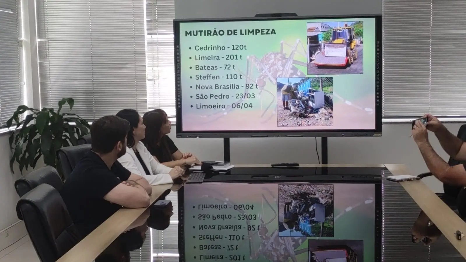 Entre as medidas diretas no combate ao mosquito, a prefeitura está realizando mutirões de limpeza por toda a cidade, visando prevenir a formação de pontos onde o mosquito possa se reproduzir.