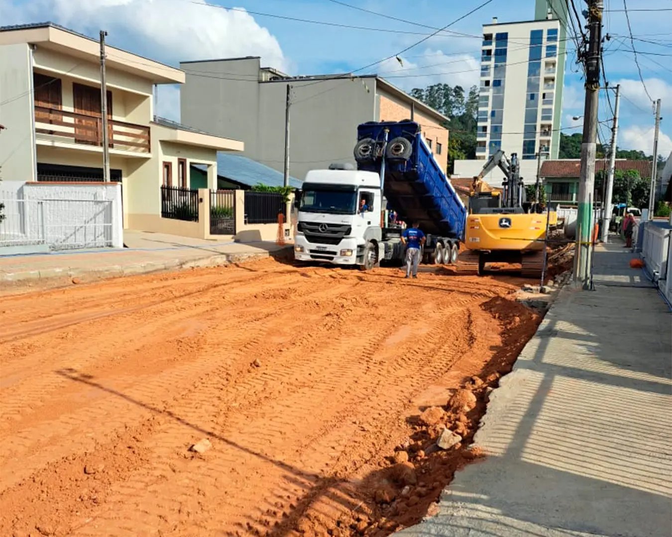 Até o fim desta semana, a drenagem na rua Pomerode deve ser concluída. Em seguida, a rua receberá pavimentação asfáltica, pintura, placas e iluminação.