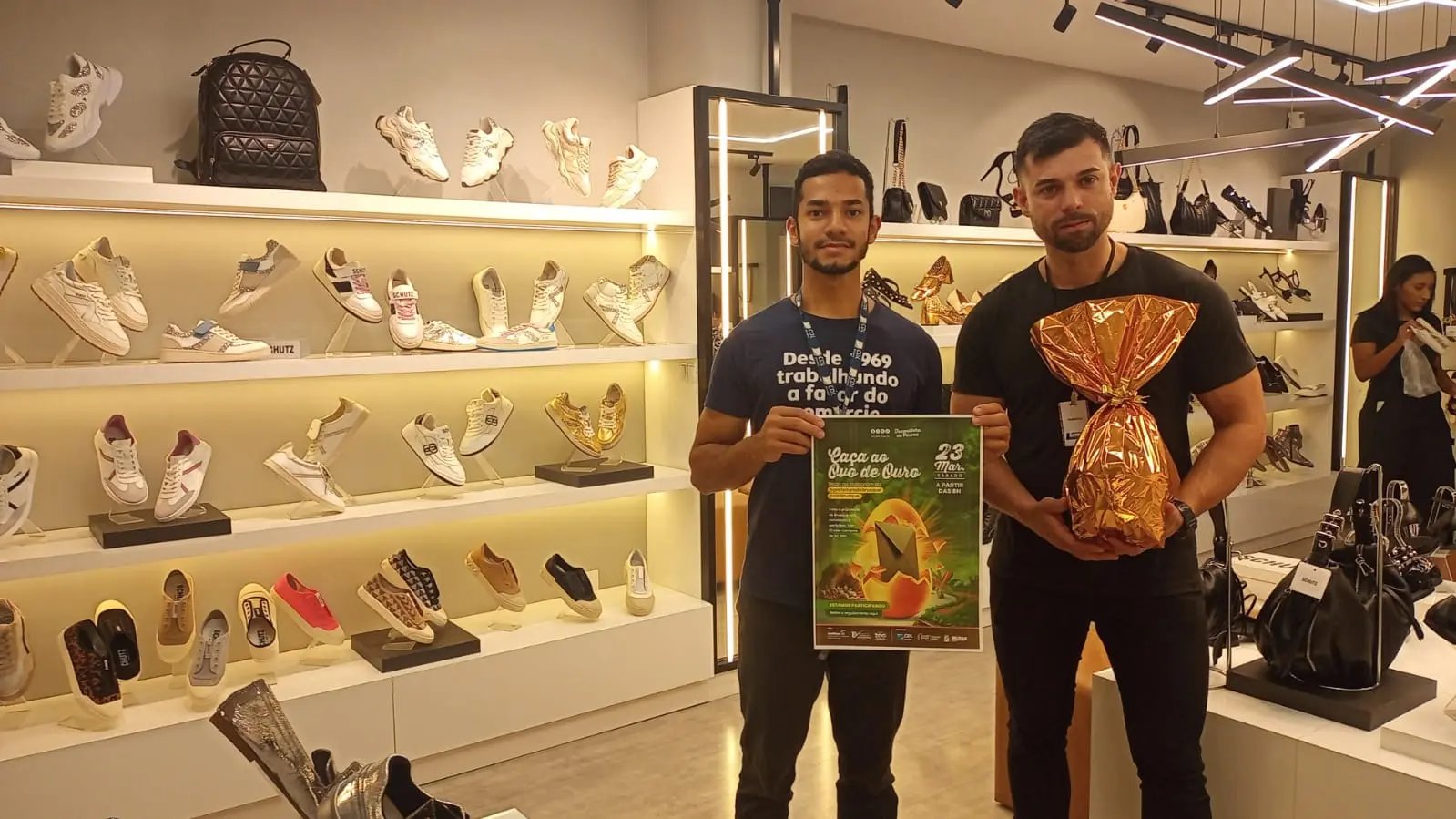 A Caça ao Ovo de Ouro consiste em dez envelopes espalhados pela cidade, contendo vale-compras de R$ 300 da Lemus Calçados, Calçados Gevaerd, Kohler Joalheria e Ótica, Ótica Moderna, Lari Cosméticos, e Livraria Saber. A ação é válida para crianças de Brusque, de 2 a 12 anos.