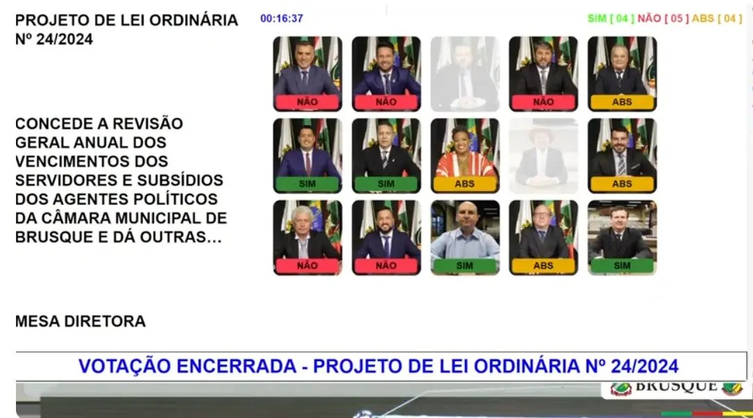 Em sessão extraordinária relâmpago, a maioria dos vereadores de Brusque rejeitou na tarde desta quinta-feira (21) o auxílio alimentação de 950 reais para os vereadores. No mesmo projeto, também estava previsto o reajuste dos servidores da Câmara, o qual também foi rejeitado.