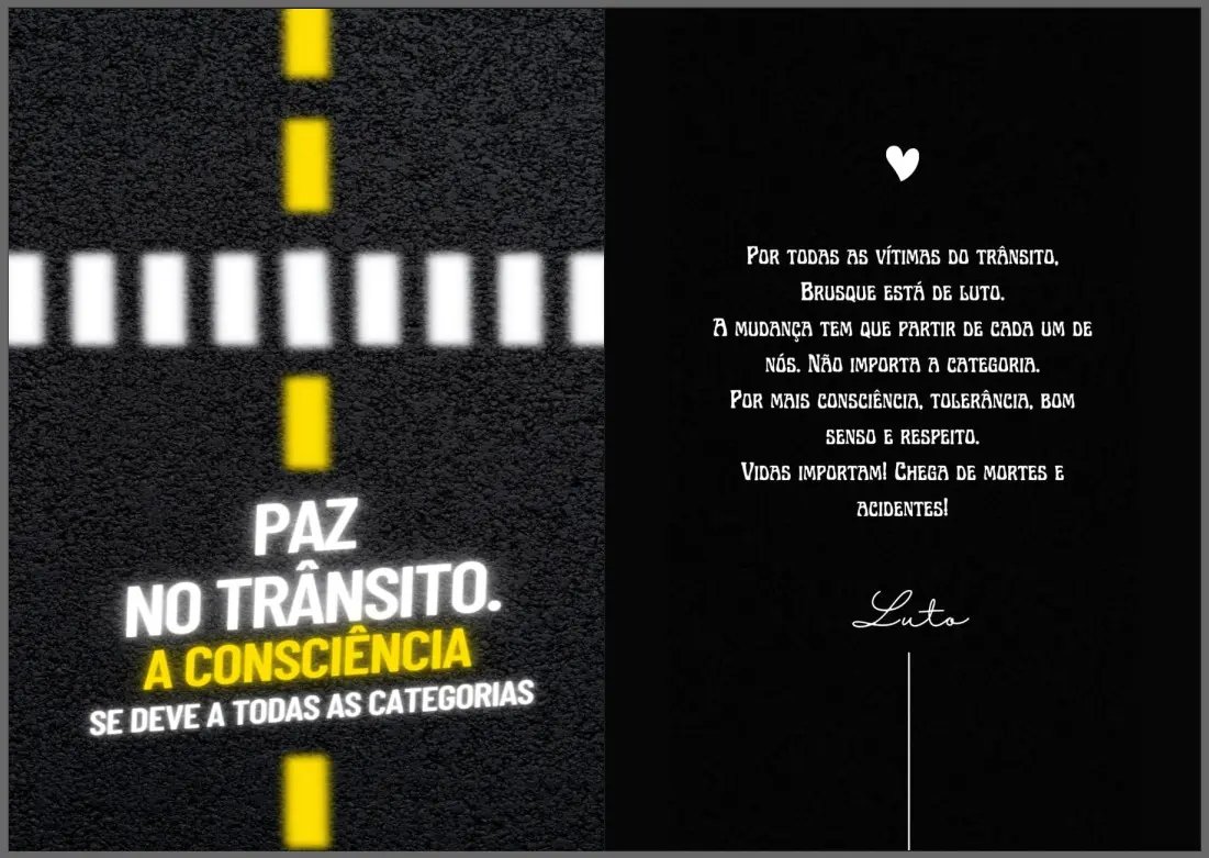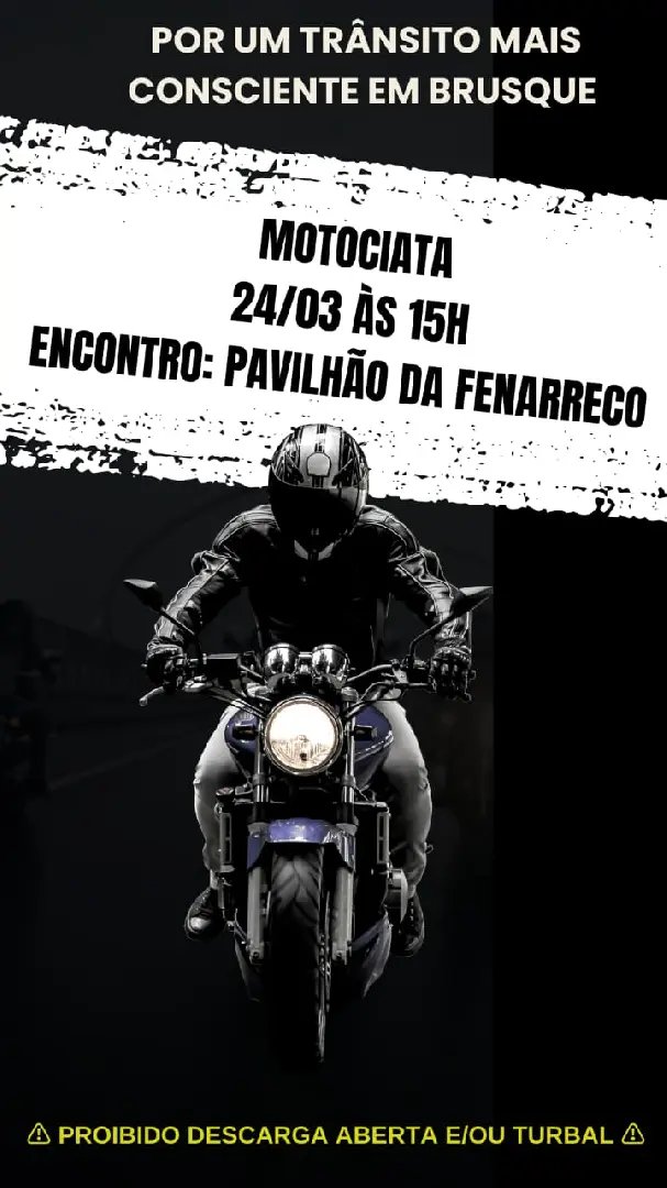 Visto o número de acidentes que vem ocorrendo em Brusque em 2024, no próximo domingo (24), um grupo de motociclistas estará realizando uma "Motociata" com uma manifestação pela paz no trânsito. A concentração ocorrerá em frente ao pavilhão da Fenarreco e seguirá até a praça Sesquicentenário.