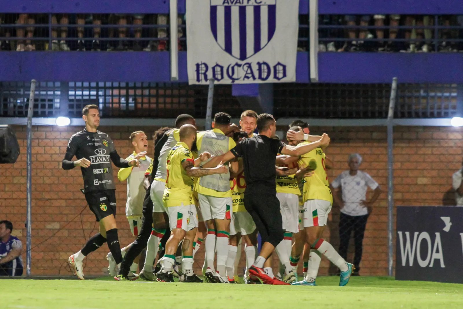 De fora da área, Alex Ruan resolveu arriscar um chute forte, e a bola acabou batendo no peito do goleiro do Avaí e sobrou livre para Guilherme Queiroz, que, no rebote dentro da área, balança a rede e empata novamente o jogo.