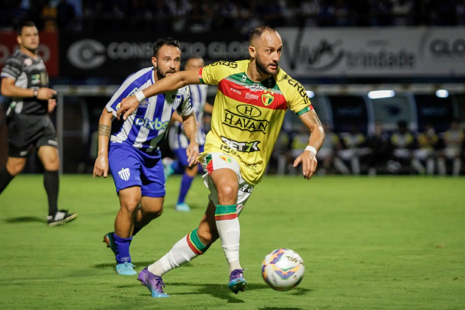 Mas se tem uma coisa que o time do Brusque é guerreiro, e a equipe foi para cima do Avaí para buscar o empate. E ele aconteceu aos 25 minutos com um dos artilheiros do time.