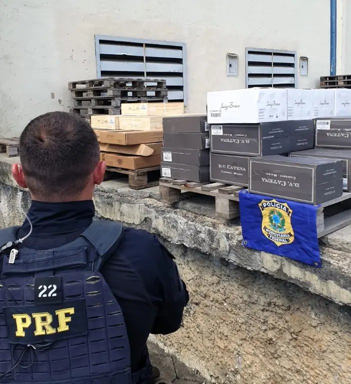 Policiais rodoviários federais localizaram na manhã nesta quinta-feira (28), na BR-101 em Itajaí, 272 garrafas de vinhos importados ilegalmente da Argentina. A carga estava no porta-malas de um automóvel placas de Paro Branco/PR.