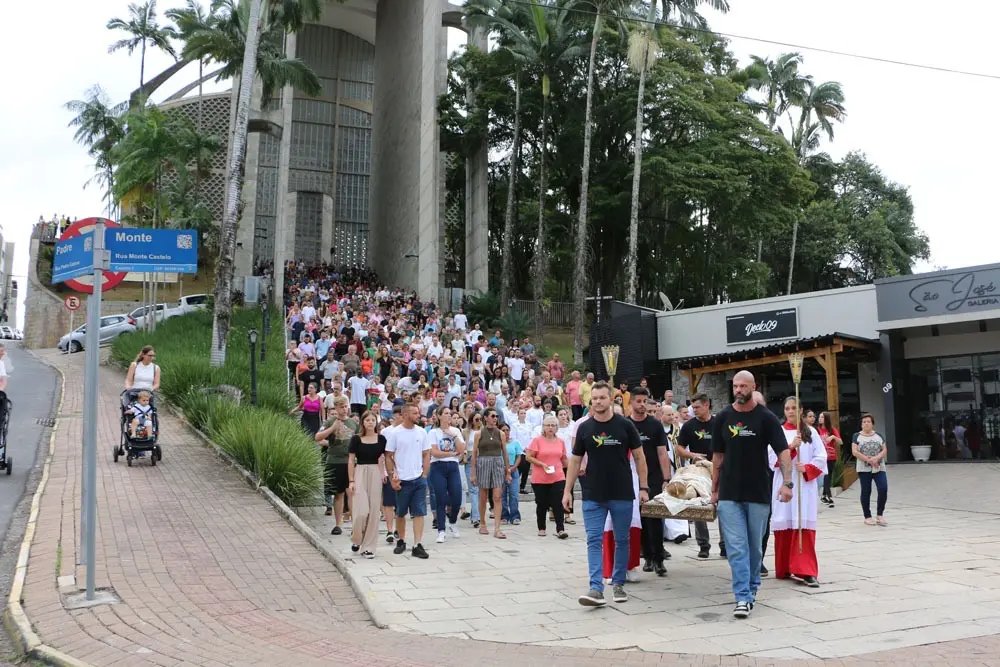 No amanhecer deste domingo, 31 de março, os primeiros raios de Sol iluminaram a gruta ao lado da escadaria Matriz São Luís Gonzaga anunciando a ressurreição de Jesus. Ao som dos sinos, surgiu o Cristo ressuscitado, conduzido pelo pároco, padre Diomar Romaniv, com o Santíssimo Sacramento em procissão pelas ruas do centro. Do topo das escadas, com Brusque iluminada pela aurora, a cidade recebeu a benção que marca o início de um tempo de renovação e esperança com a ressurreição. Em seguida, foi realizada a Santa Missa das 7h, a primeira do Domingo de Páscoa.