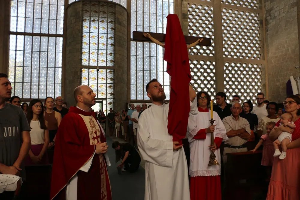 Com celebração às 15h, na Sexta-feira Santa, a comunidade se reuniu para a solenidade da Paixão e Morte de Jesus. O momento foi marcado por oração, silêncio e reflexão. “Neste dia tivemos a celebração seguida de procissão com a imagem do Senhor Morto e seu sepultamento. É um momento muito forte e de grande significado de fé”, falou o pároco.